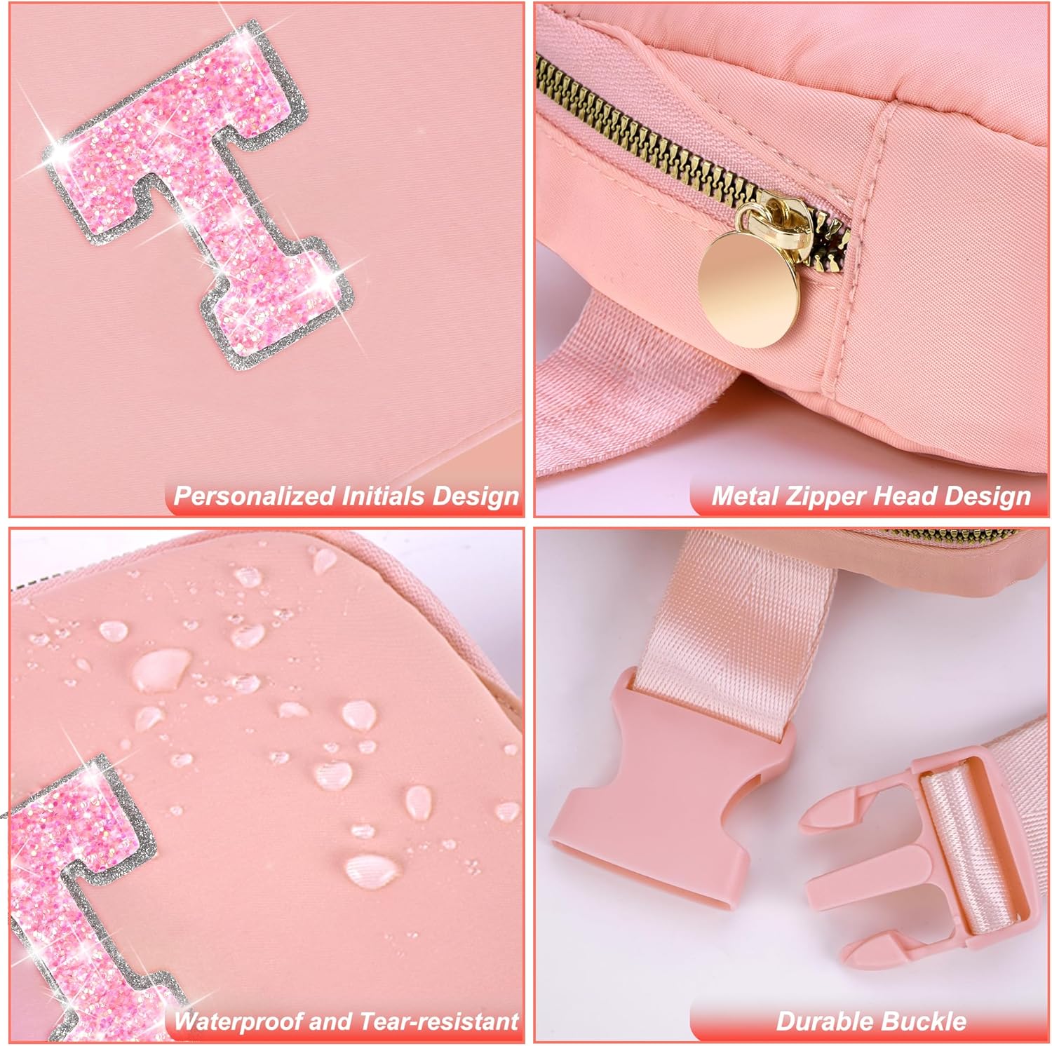 - HIGH QUALITY MATERIAL: Made of waterproof nylon material,but please do not immerse it in water.This fanny bag is designed with a round metal zipper head and personalized initials for a stylish and elegant look