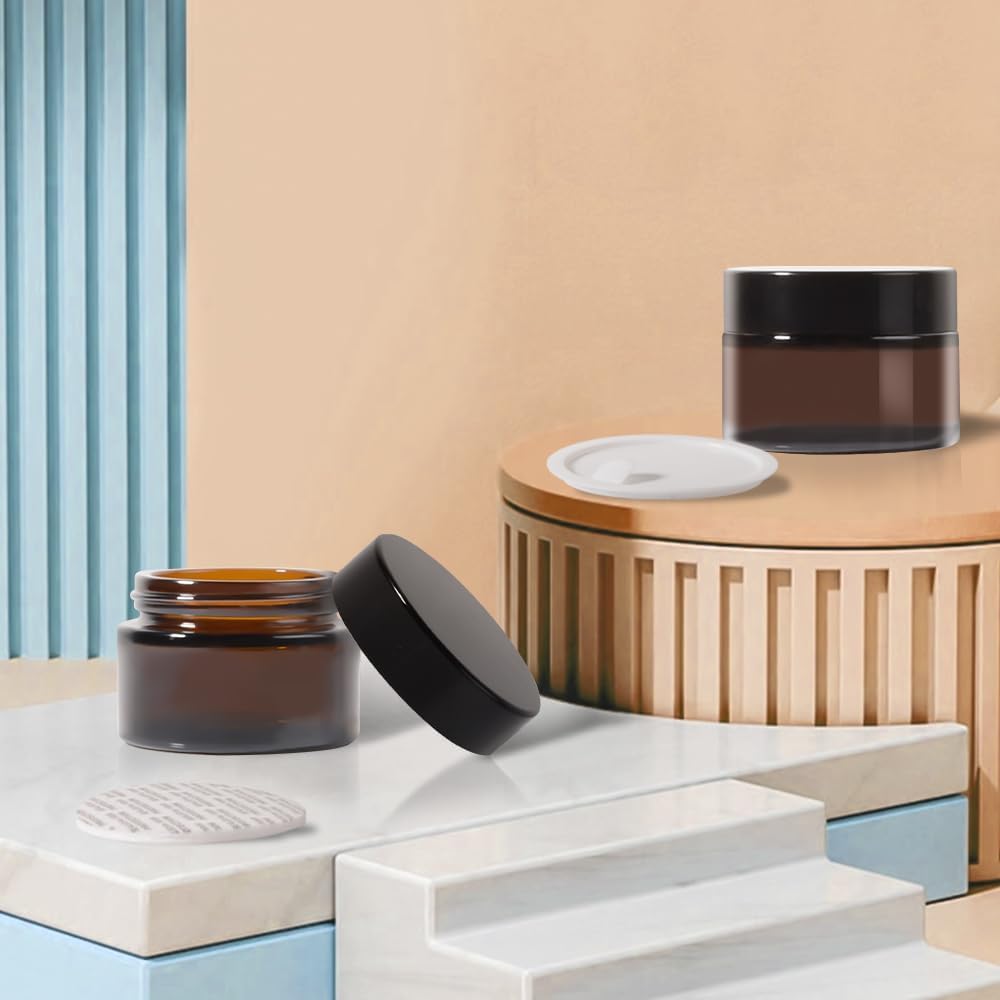 - 【ELEGANT DESIGN】Empty glass jars have a more elegant and high-quality appearance, protects your light-sensitive lotion from degrading, you don't need to worry about ultraviolet light causing your mixtures to lose potency over time