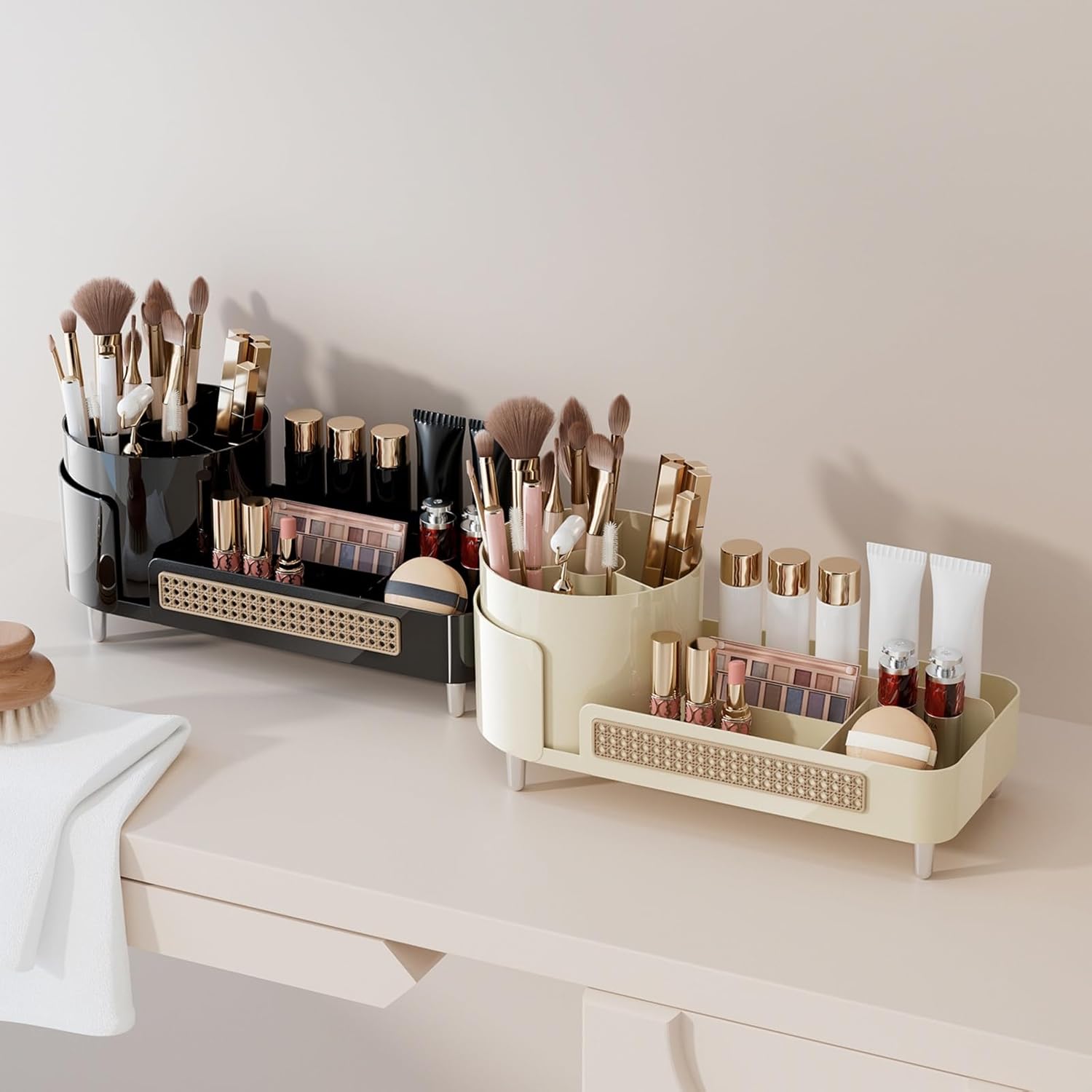- 360° Rotating Design:Effortlessly access your makeup brushes and accessories with the convenient rotating feature,Large Capacity Countertop Skincare Organizer,making your daily routine a breeze
