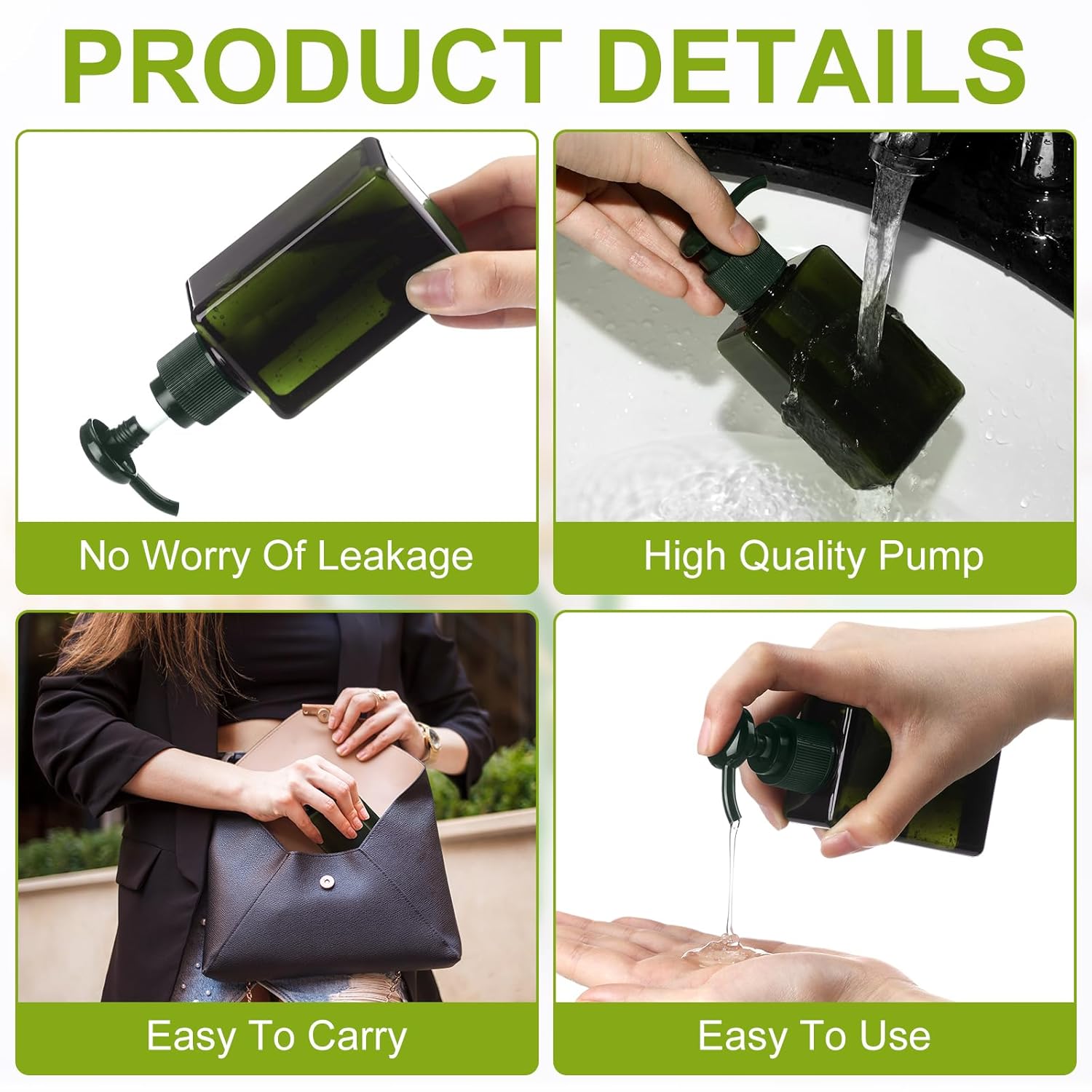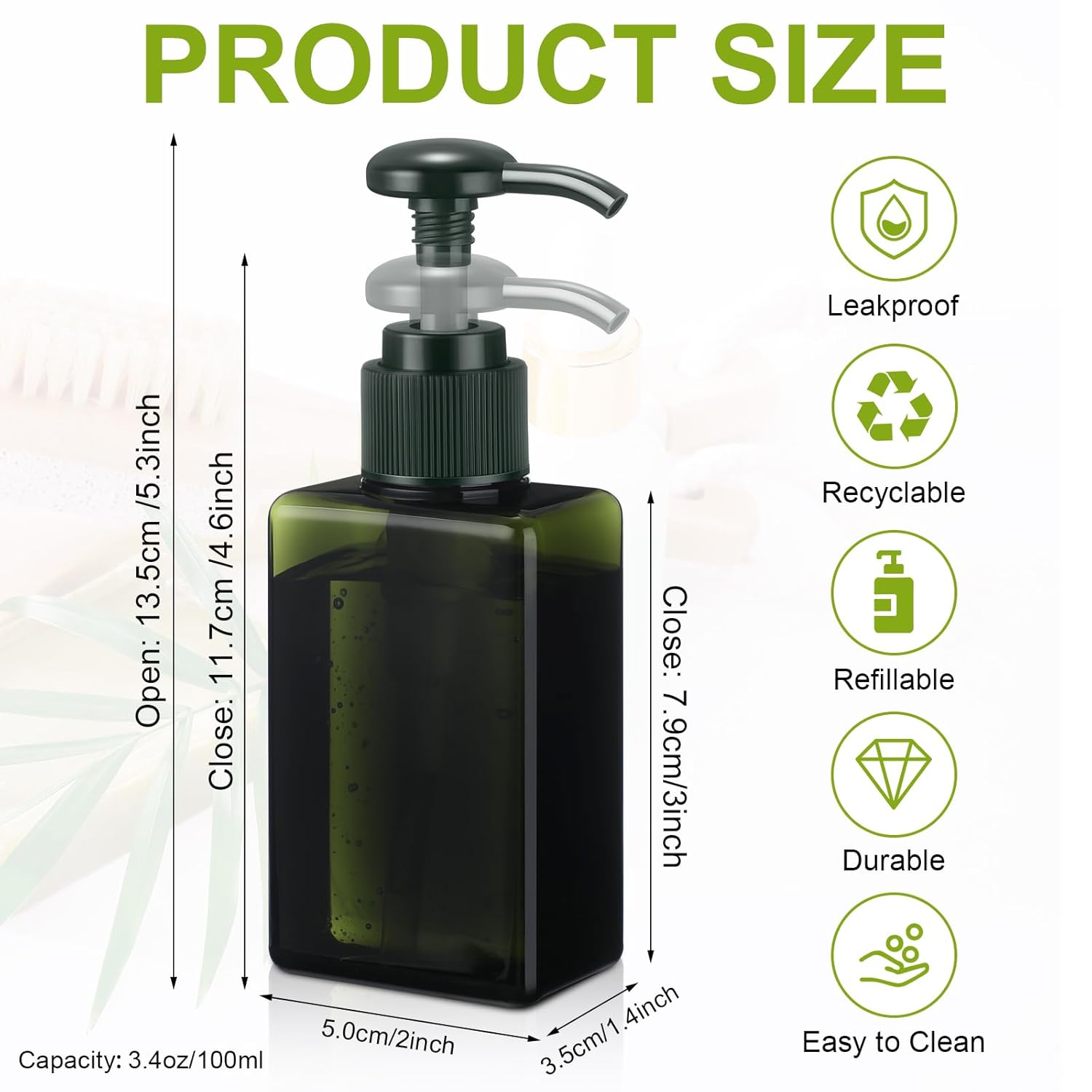 Domensi 24 Pcs 100ml /3.4 oz Pump Bottle Mini Travel Bottles Small Dispenser Containers Plastic Pump Lotion Dispenser Empty Square Travel Size Containers Toiletries (Dark Green)
