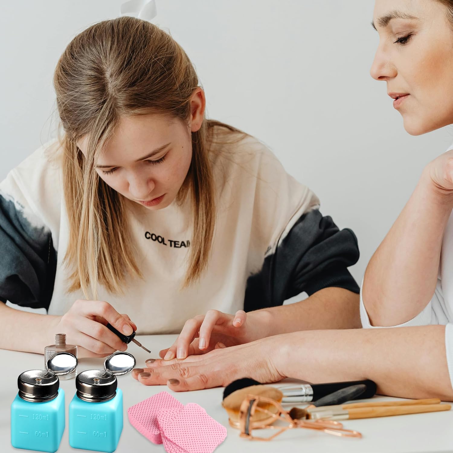 Pump Bottle Dispenser 120ml Nail Polish Remover Pump Metal Push Down Pump Dispenser 200Pcs Lint Free Nail Wipes Alcohol Dispenser Eye Makeup Remover Pump Push Down Empty Bottle -Blue