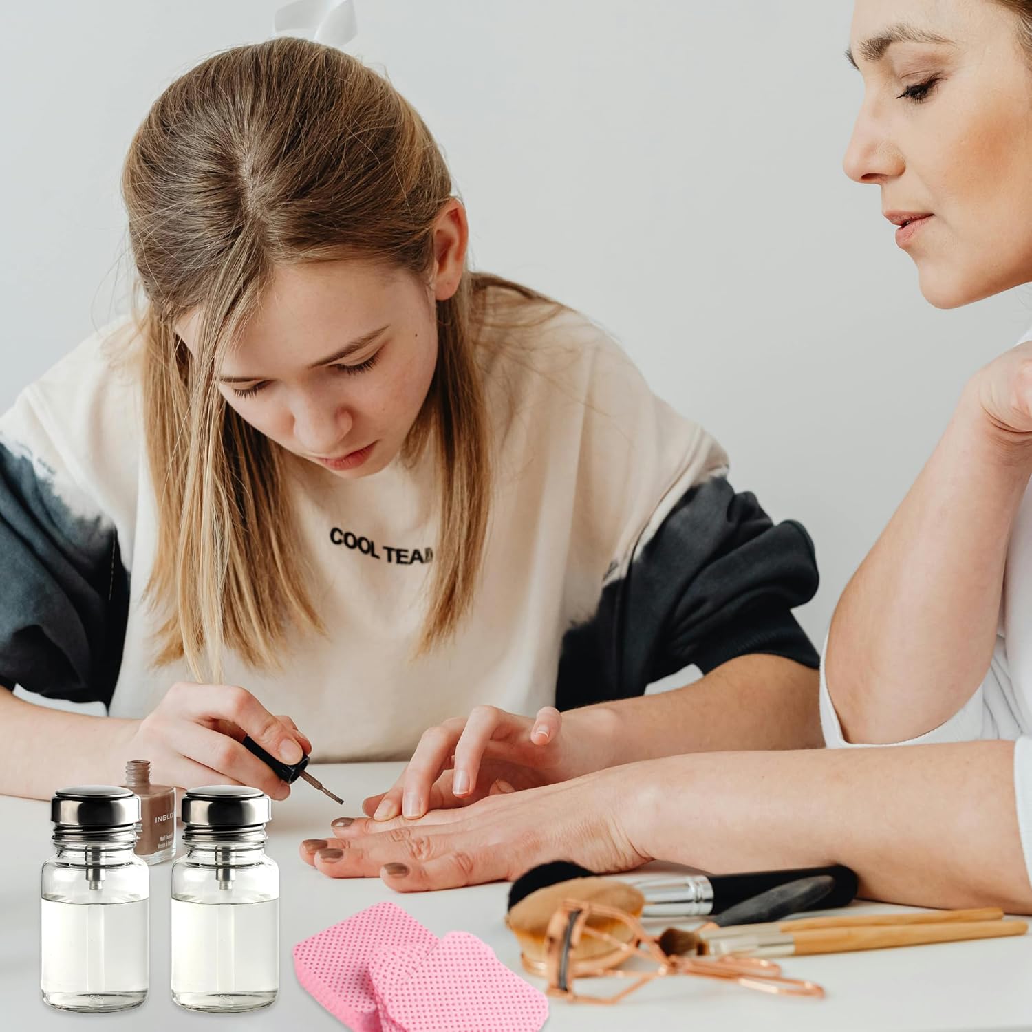 - [Convenient Use]: Pour the nail polish remover or other liquids into the pump bottle dispenser, tighten the lid, open the lid when using, and gently press with a paper towel or cotton pad to soak the nail polish remover.