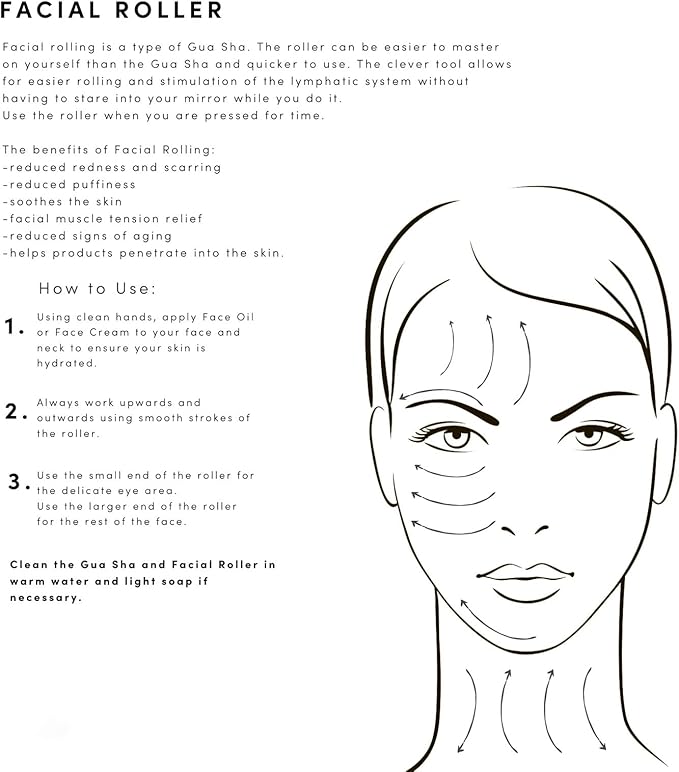 - SPA-QUALITY MASSAGE: Experience the revitalizing benefits of spa treatment therapy right in your own home. Use the roller and scraping tool with your face cream and serum to increase skin absorption.