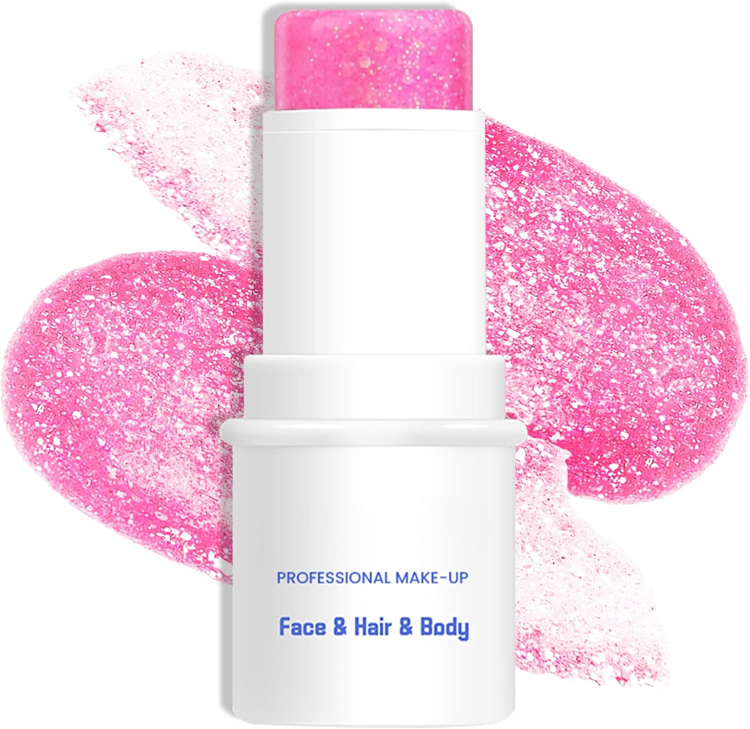 Pink Body & Face Glitter Makeup Stick, Multiuse Waterproof Glitter Gel for Face Body Hair Eye Lip, Holographic Sequins Paint Stick, Mermaid Accessories Makeup