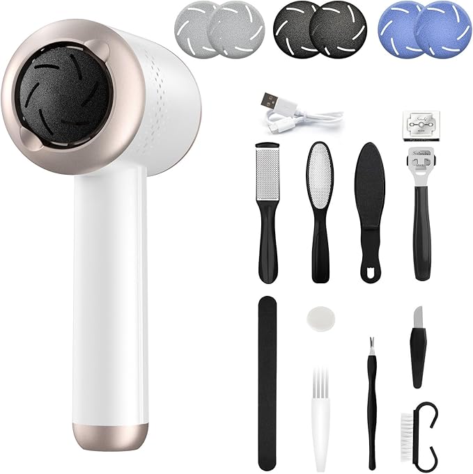Electric Foot Callus Remover, Rechargeable Foot File Callus Remover for Feet, Portable Foot Scrubber with 10in1 Pedicure Tools for Feet Cracked Heel Dead Skin, 6 Rollers, 3 Speed