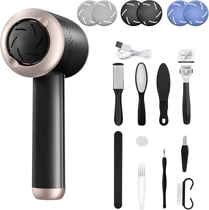 Electric Foot Callus Remover, Rechargeable Foot File Callus Remover for Feet, Portable Foot Scrubber with 10in1 Pedicure Tools for Feet Cracked Heel Dead Skin, 6 Rollers, 3 Speed