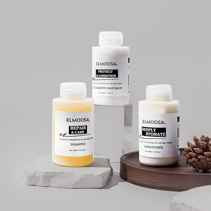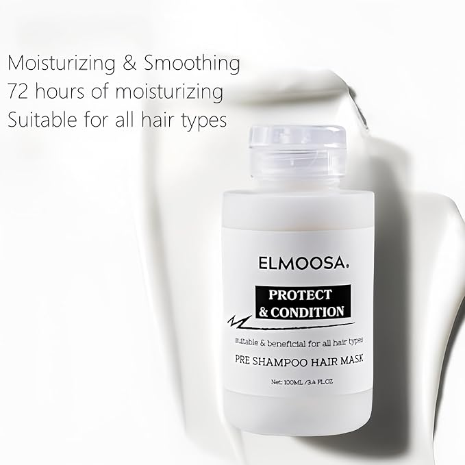 - Moisturizes and softens the hair, finding its own shine. ELMOOSA's Pre-Shampoo Hair Mask formula locks in moisture and deeply hydrates hair while keeping it soft and hydrated for longer.