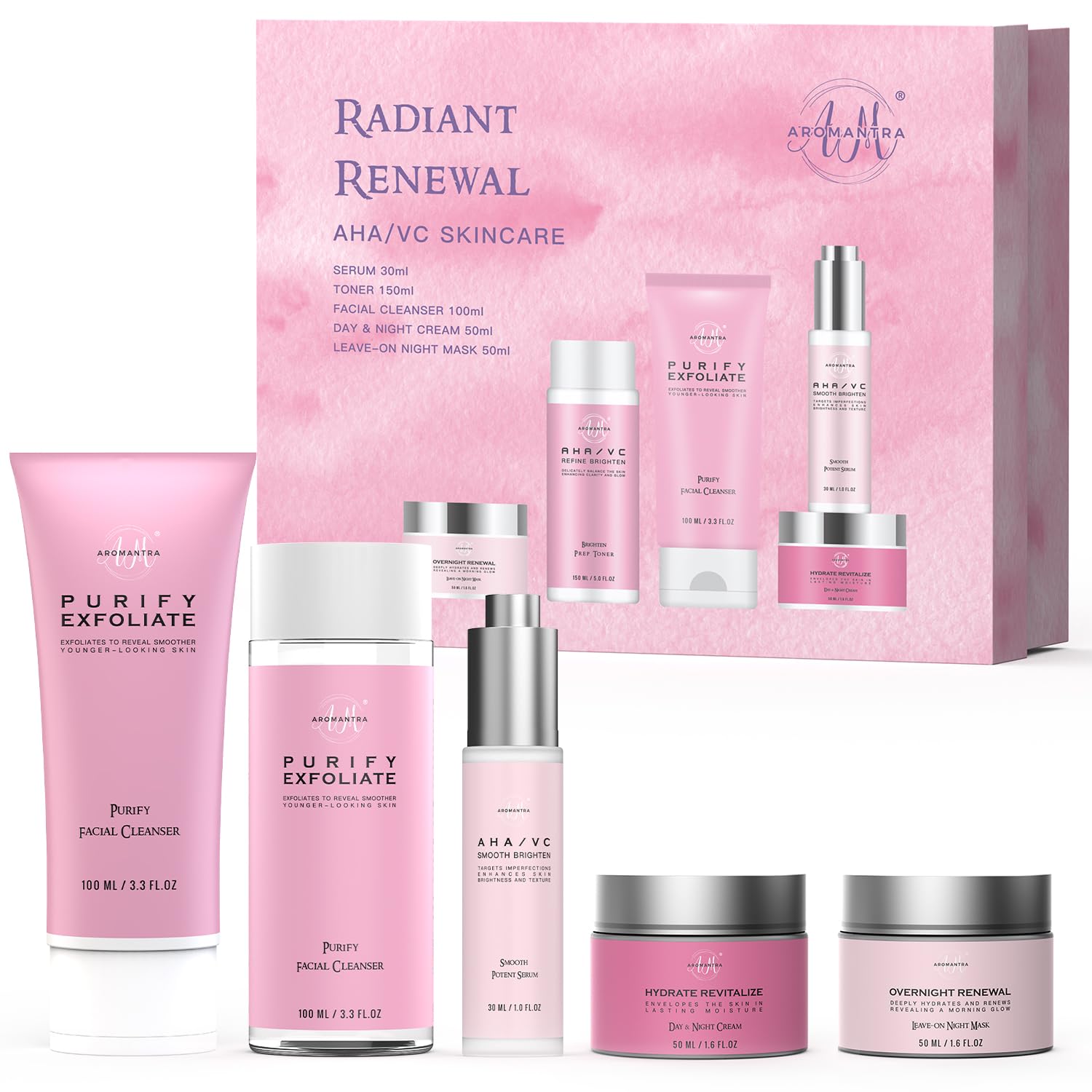 - 【Daily Skin Care Kit】This 5-piece skincare set beauty products contains our 100ml Facial Cleanser, 30ml Serum, 150ml Toner, 50ml Cream And 50ml Leave On Night Mask. This skincare bundle leaves skin looking more radiant and renewed and helps improve skin’s texture so it feels soft and smooth