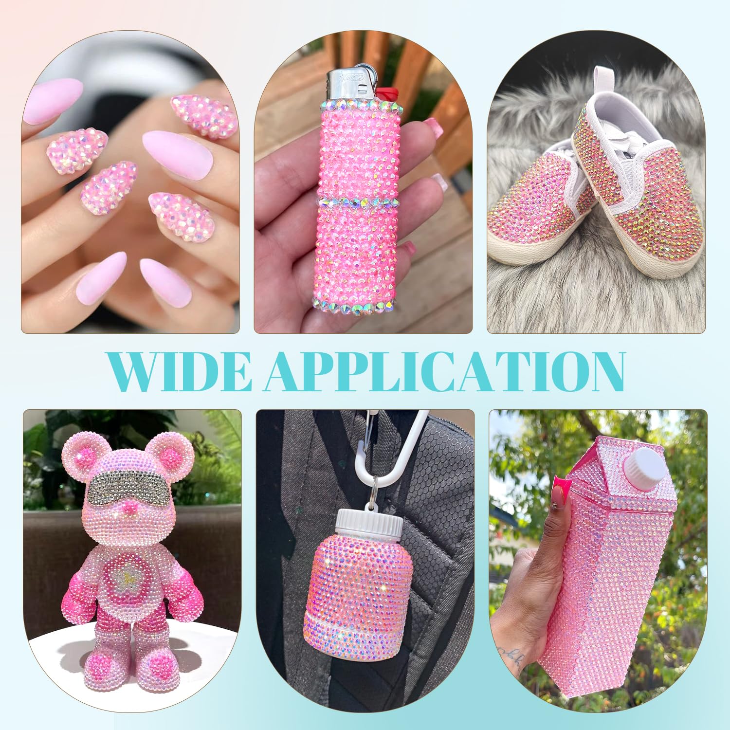 - ๐WIDE APPLICATION -- These sparkling iridescent resin crystals are perfect for creating dazzling looks. Use them for bedazzling DIY crafts like shoes, tumblers, mugs, bottles, phone cases, popsockets, scrapbooks, photo frames, diamond paintings, greeting cards, bags, glasses, guitars, keychains, hats, masks, hair clips, bracelets, wristbands, clothing, wedding dresses, and more. Apply it to what you want to bling!