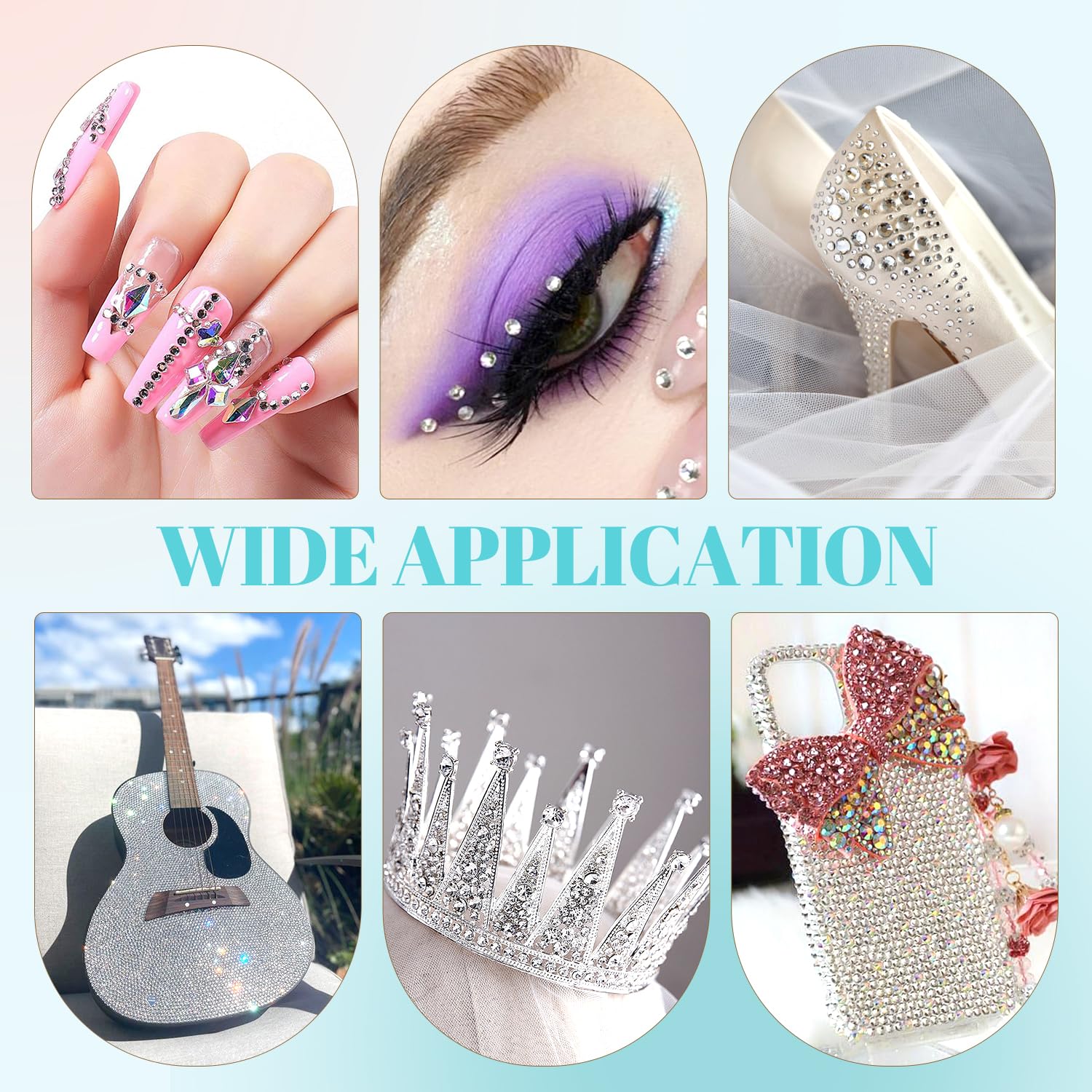 - ๐WIDE APPLICATION -- These sparkling iridescent resin crystals are perfect for creating dazzling looks. Use them for bedazzling DIY crafts like shoes, tumblers, mugs, bottles, phone cases, popsockets, scrapbooks, photo frames, diamond paintings, greeting cards, bags, glasses, guitars, keychains, hats, masks, hair clips, bracelets, wristbands, clothing, wedding dresses, and more. Apply it to what you want to bling!