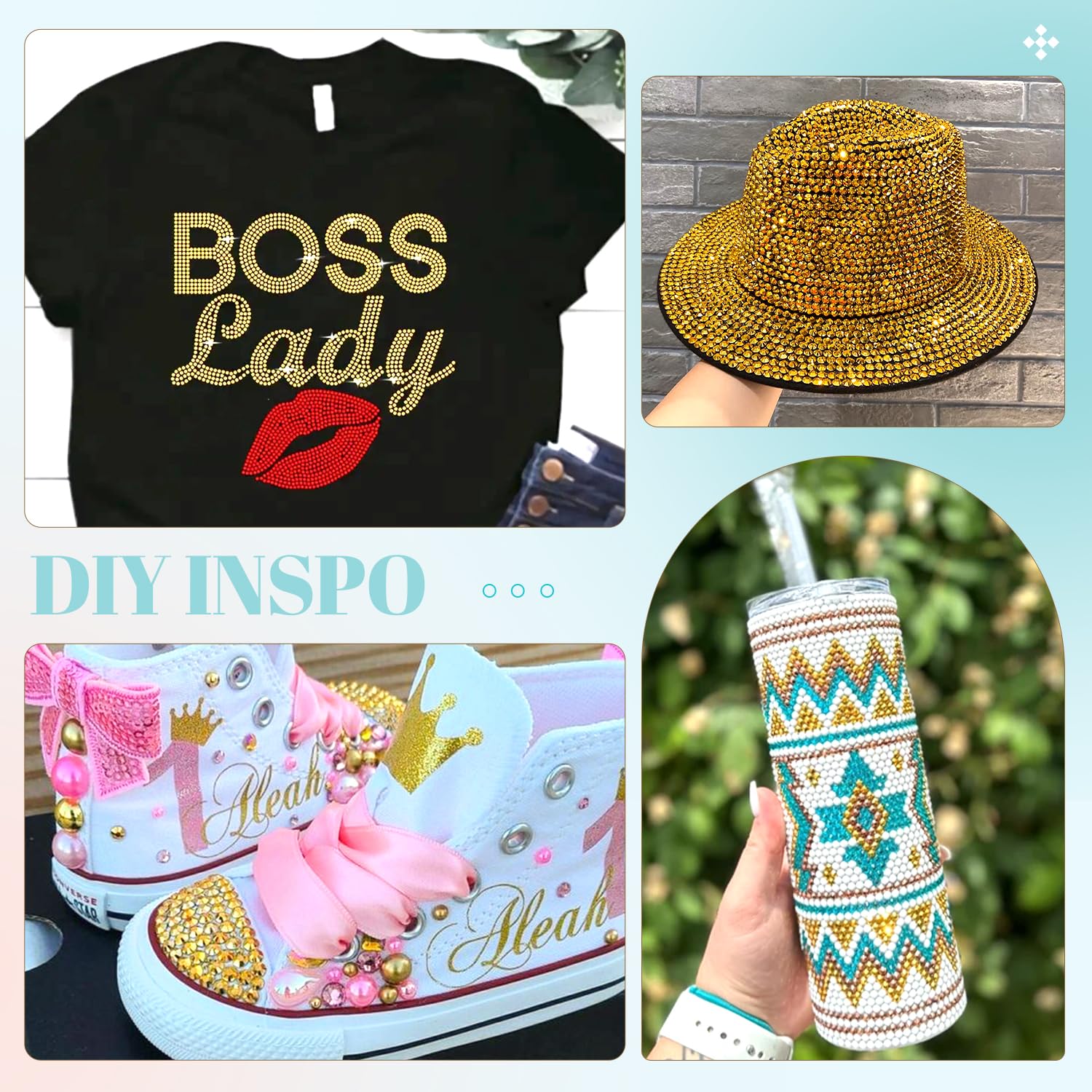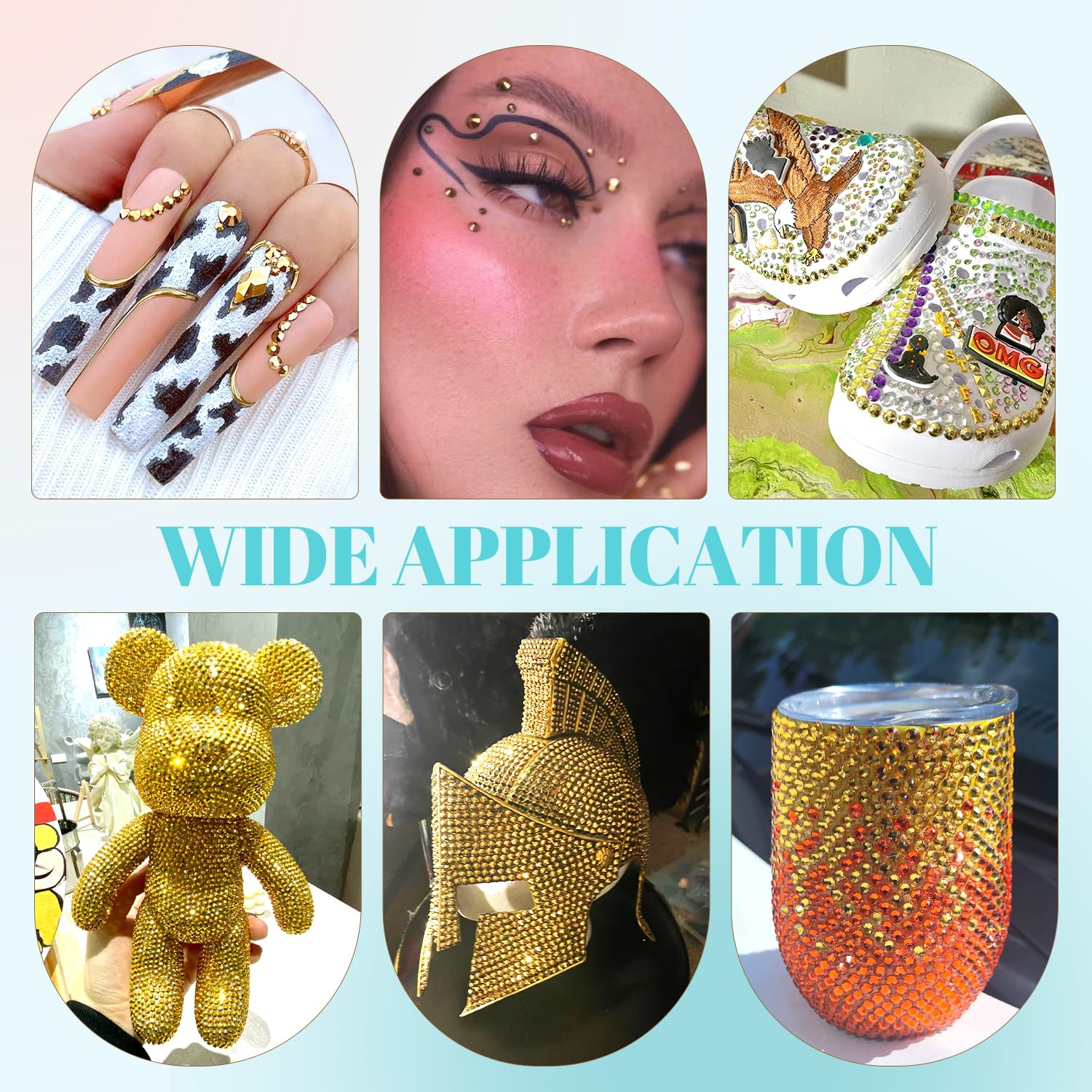 - ๐WIDE APPLICATION -- These sparkling iridescent resin crystals are perfect for creating dazzling looks. Use them for bedazzling DIY crafts like shoes, tumblers, mugs, bottles, phone cases, popsockets, scrapbooks, photo frames, diamond paintings, greeting cards, bags, glasses, guitars, keychains, hats, masks, hair clips, bracelets, wristbands, clothing, wedding dresses, and more. Apply it to what you want to bling!