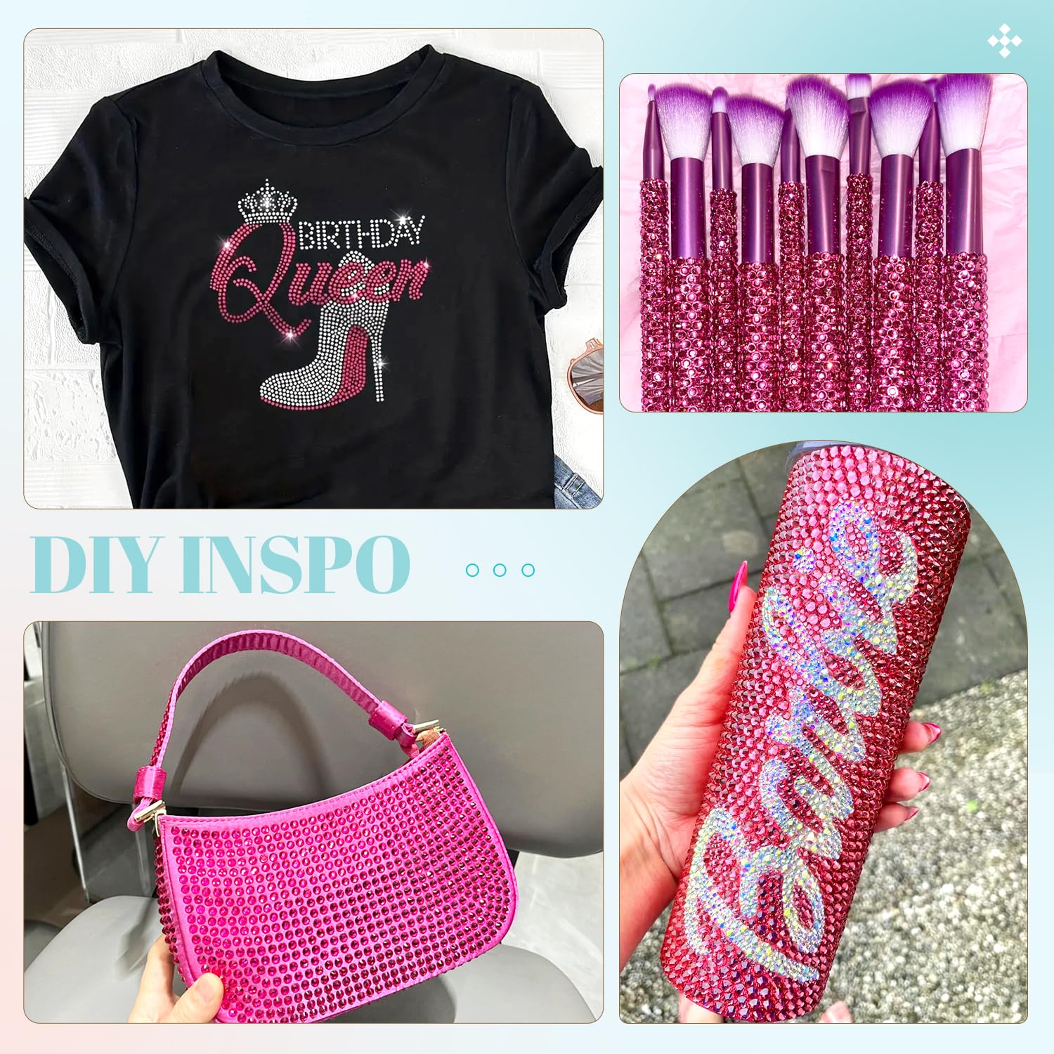 - ๐WIDE APPLICATION -- These sparkling iridescent resin crystals are perfect for creating dazzling looks. Use them for bedazzling DIY crafts like shoes, tumblers, mugs, bottles, phone cases, popsockets, scrapbooks, photo frames, diamond paintings, greeting cards, bags, glasses, guitars, keychains, hats, masks, hair clips, bracelets, wristbands, clothing, wedding dresses, and more. Apply it to what you want to bling!