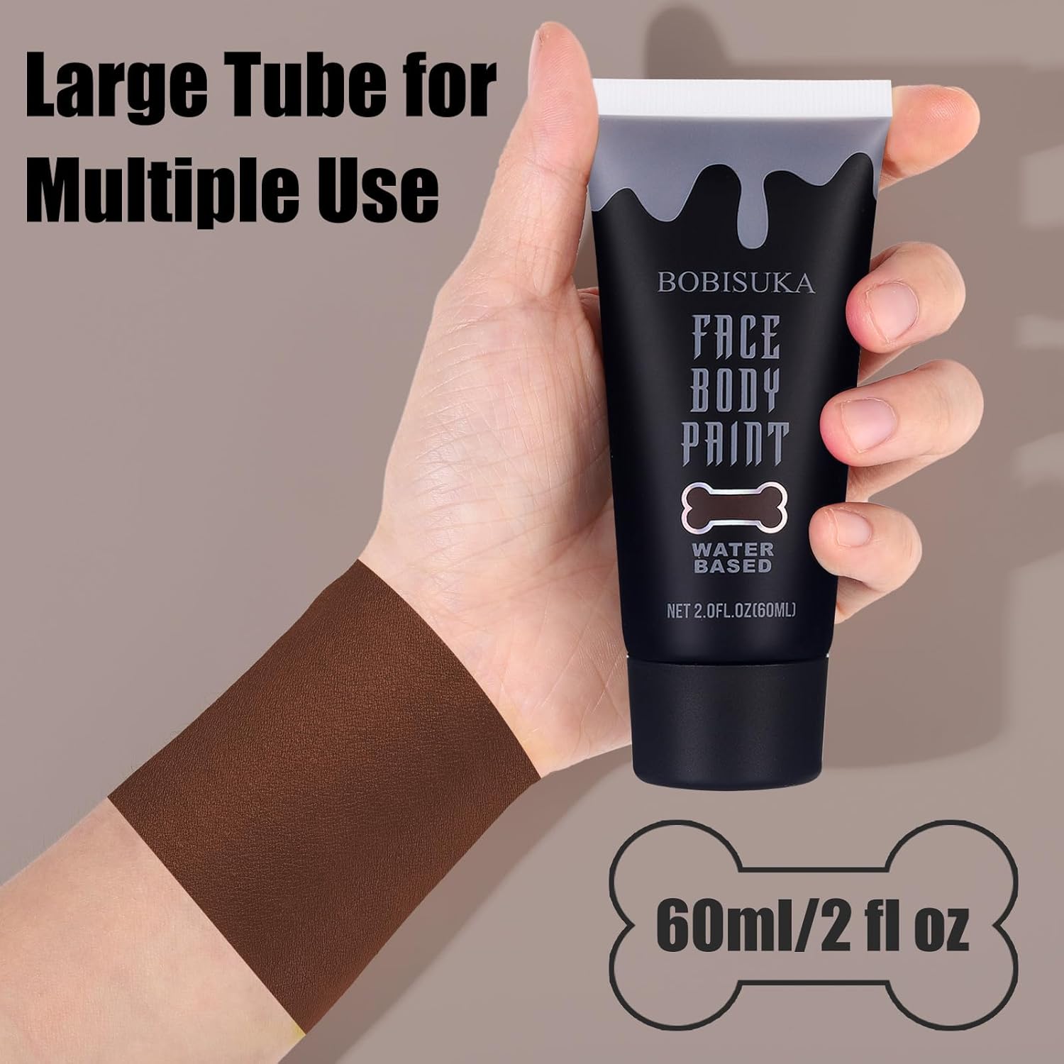 BOBISUKA Brown Face Body Paint, Water Based Face Painting for Art Theater Halloween Party Cosplay Clown SFX Makeup for Women Adults, Non-Toxic Washable