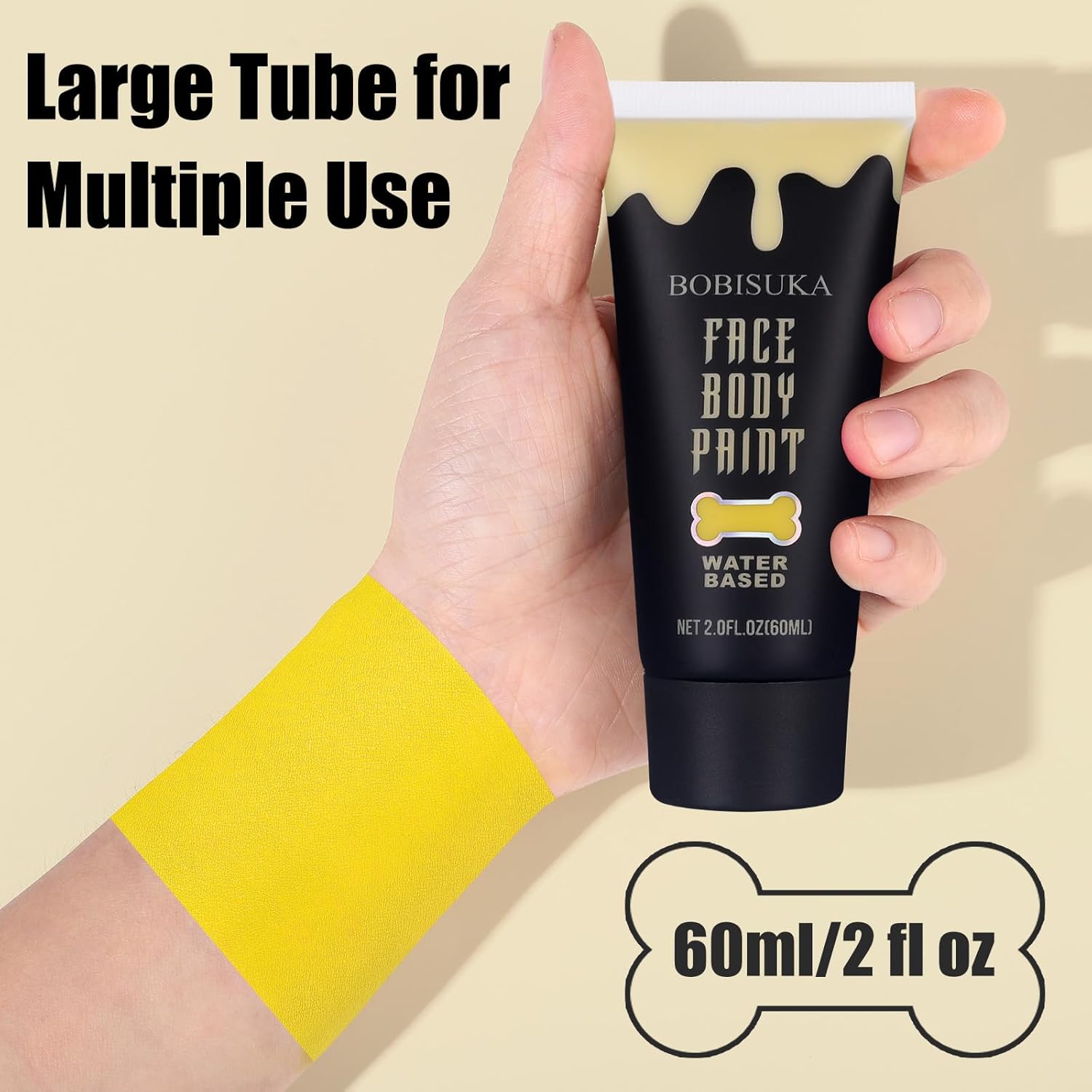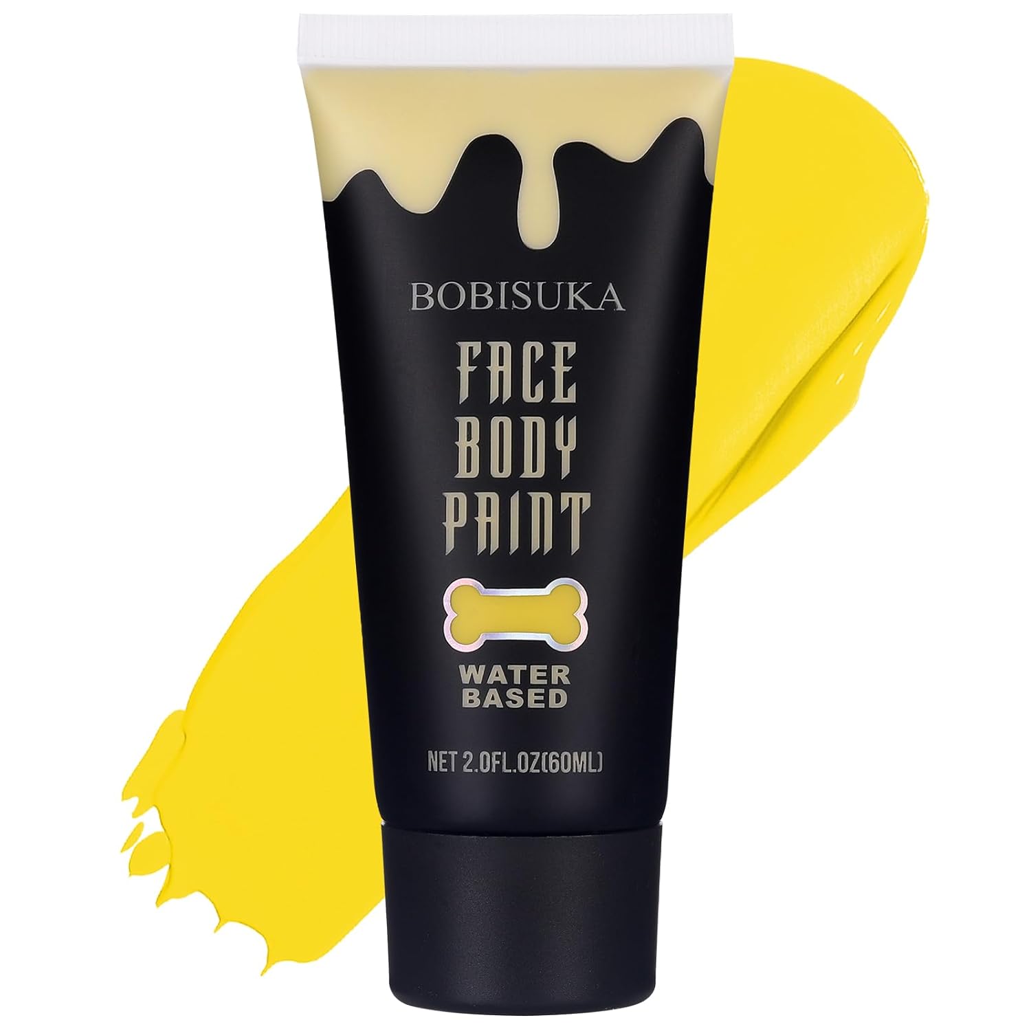 BOBISUKA Yellow Face Body Paint, Water Based Face Painting for Art Theater Halloween Party Cosplay Clown SFX Makeup for Women Adults, Non-Toxic Washable
