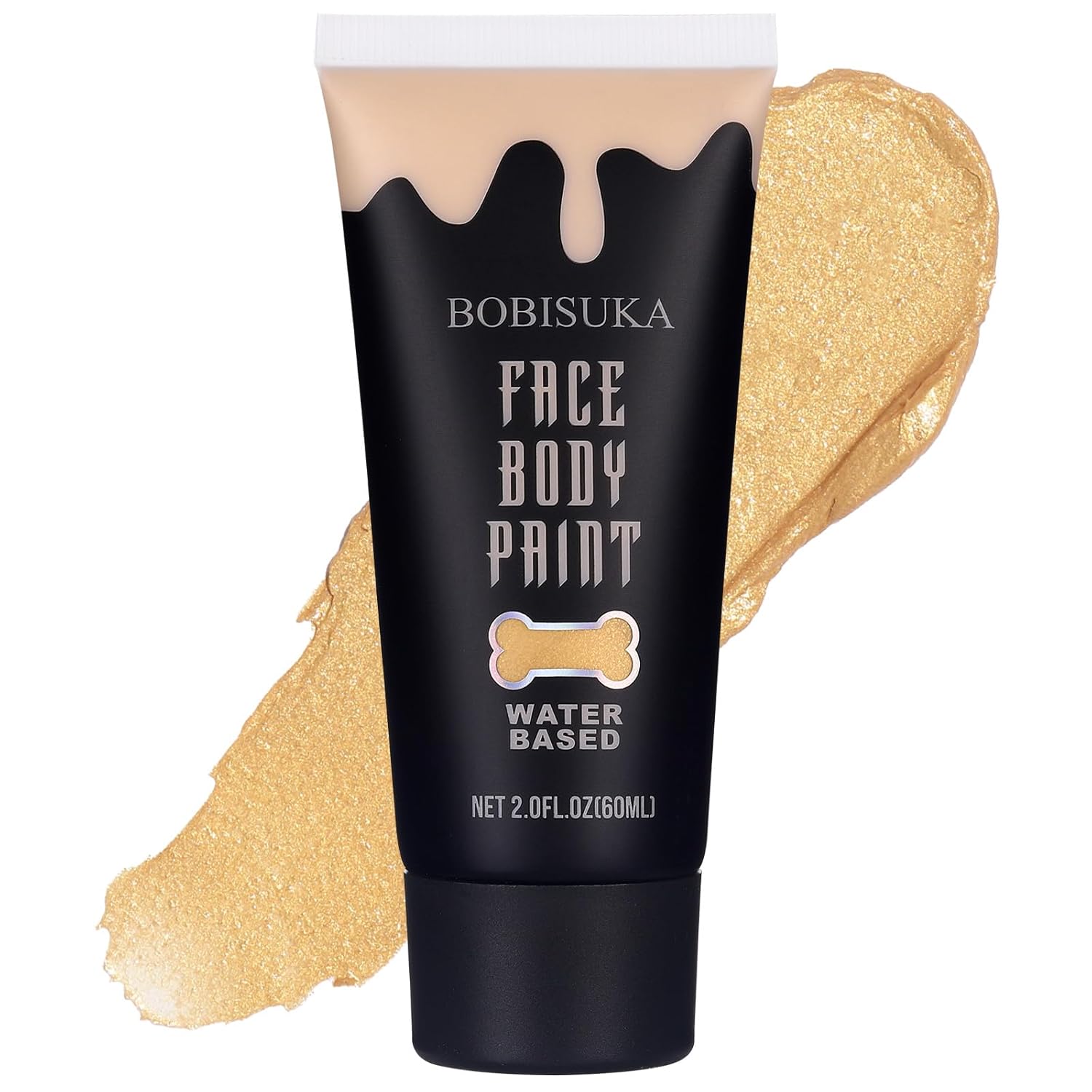BOBISUKA Gold Face Body Paint, Water Based Face Painting for Art Theater Halloween Party Cosplay Clown SFX Makeup for Women Adults, Non-Toxic Washable