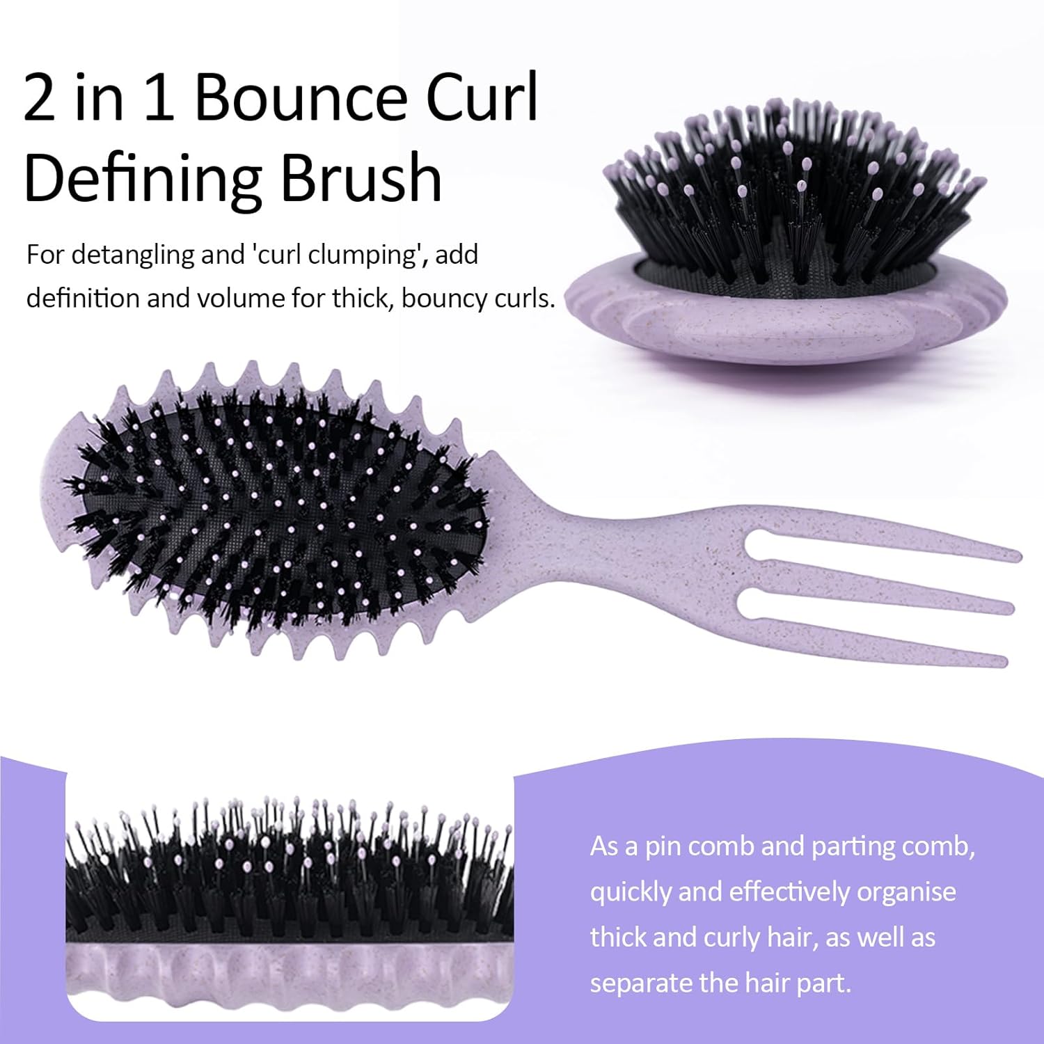 Curly Hair Boar Bristle Curl Defining Brush for Curl Wave Straight Hair, Unique Trident Handle Design Defineing Brush for Wet Dry HairsStyling Massage Hairbrush Hairs Pick Comb Purple