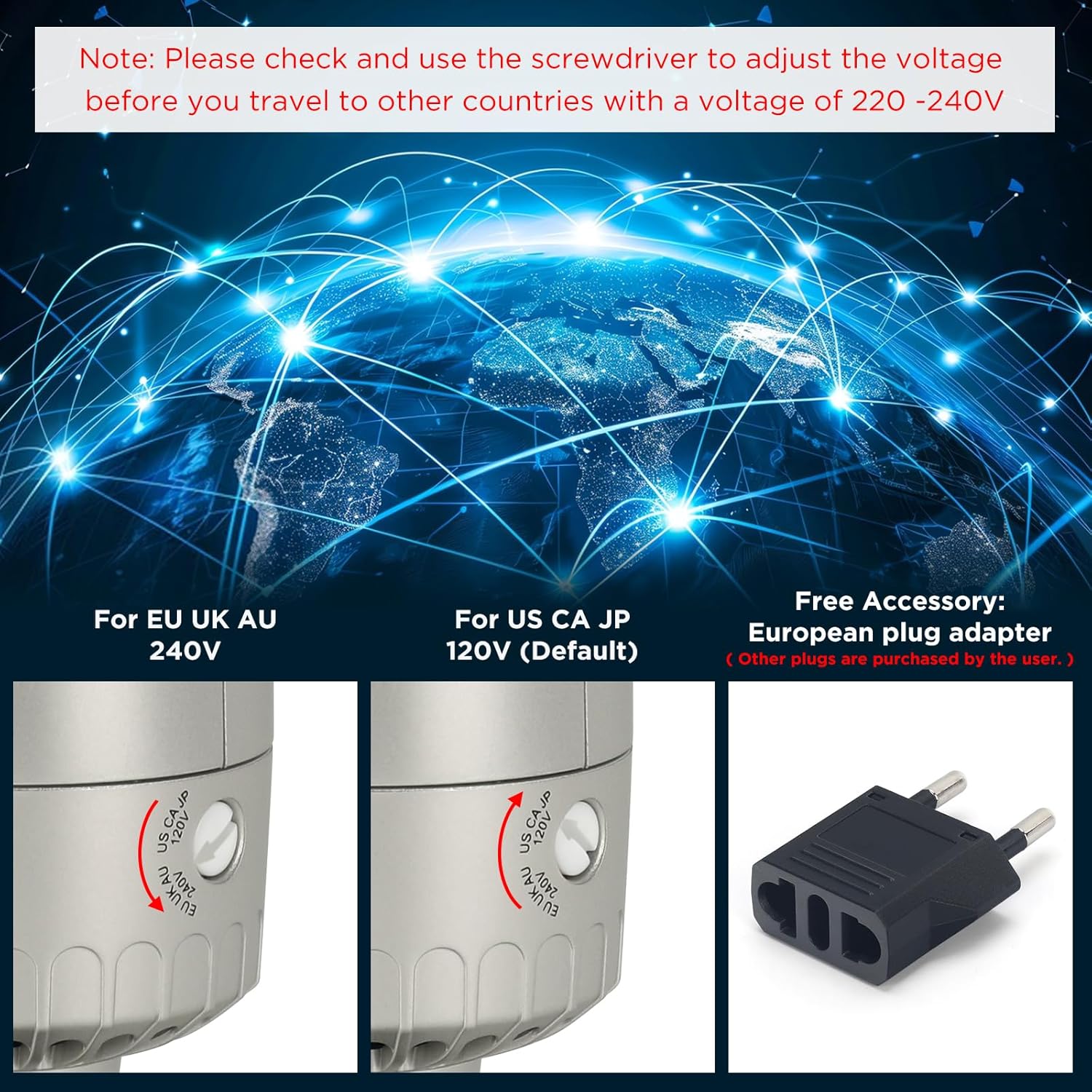 - Worldwide Dual Voltage Hair Dryer Brush Blow Dryer - This dual voltage hair dryer brush can easily adapt to both the USA voltage and other voltage abroad. You no longer have to worry about voltage mismatch. Whether you are traveling for business or leisure, just bring it with you, and you can easily create exquisite hairstyles. The package include accessory 1 x Europe plug adapter. (Other plug adapter, kindly please buy youself according to the local plug)