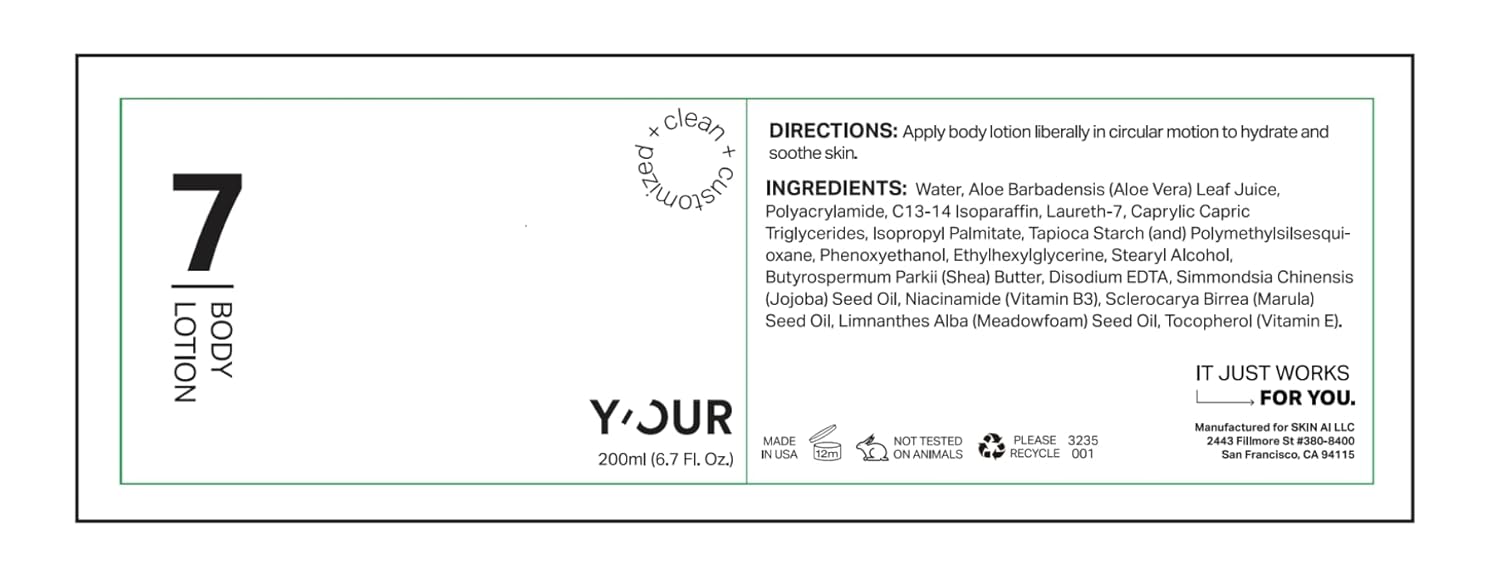 Y’OUR Moisturizing Body Lotion: Daily Hydrating Moisturizer for Dry, Cracked Skin; Vegan, Natural & Organic Skincare with Shea Butter, Aloe Vera, Jojoba Oil & Vitamin E. Made in USA for Women & Men
