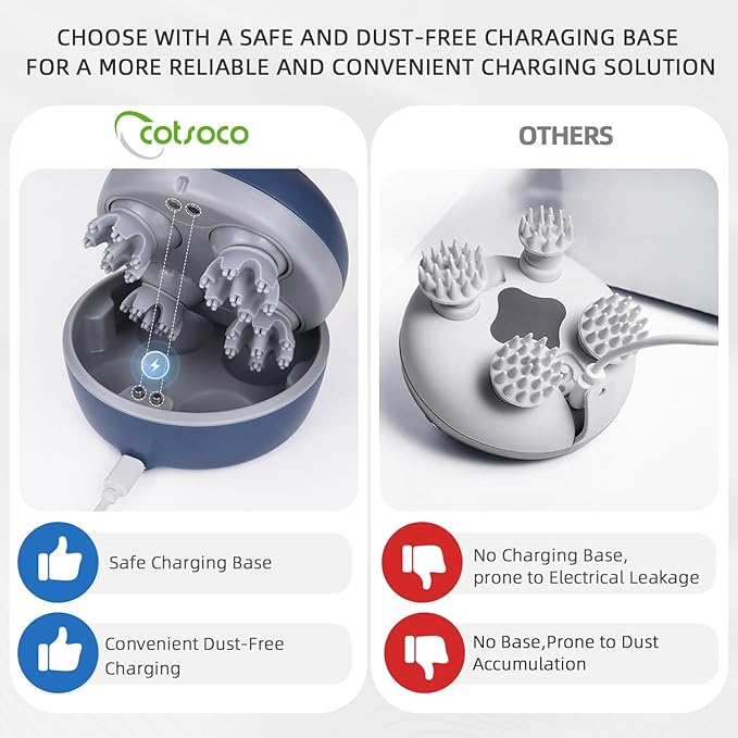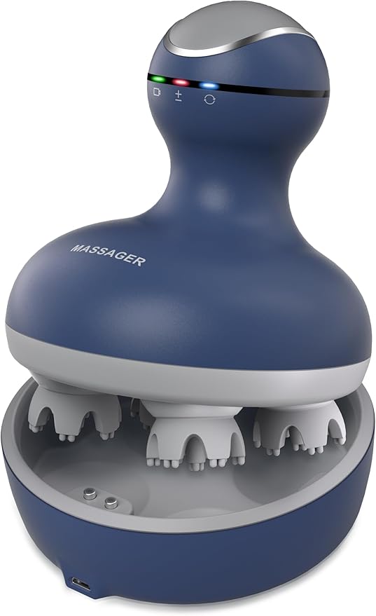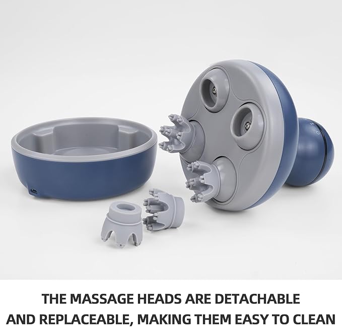 cotsoco Electric Scalp Head Massager, Scalp Hair Massage Waterproof Head Massager with 4 Heads 84 Nodes for Hair Growth and Stress Release Massage Blue
