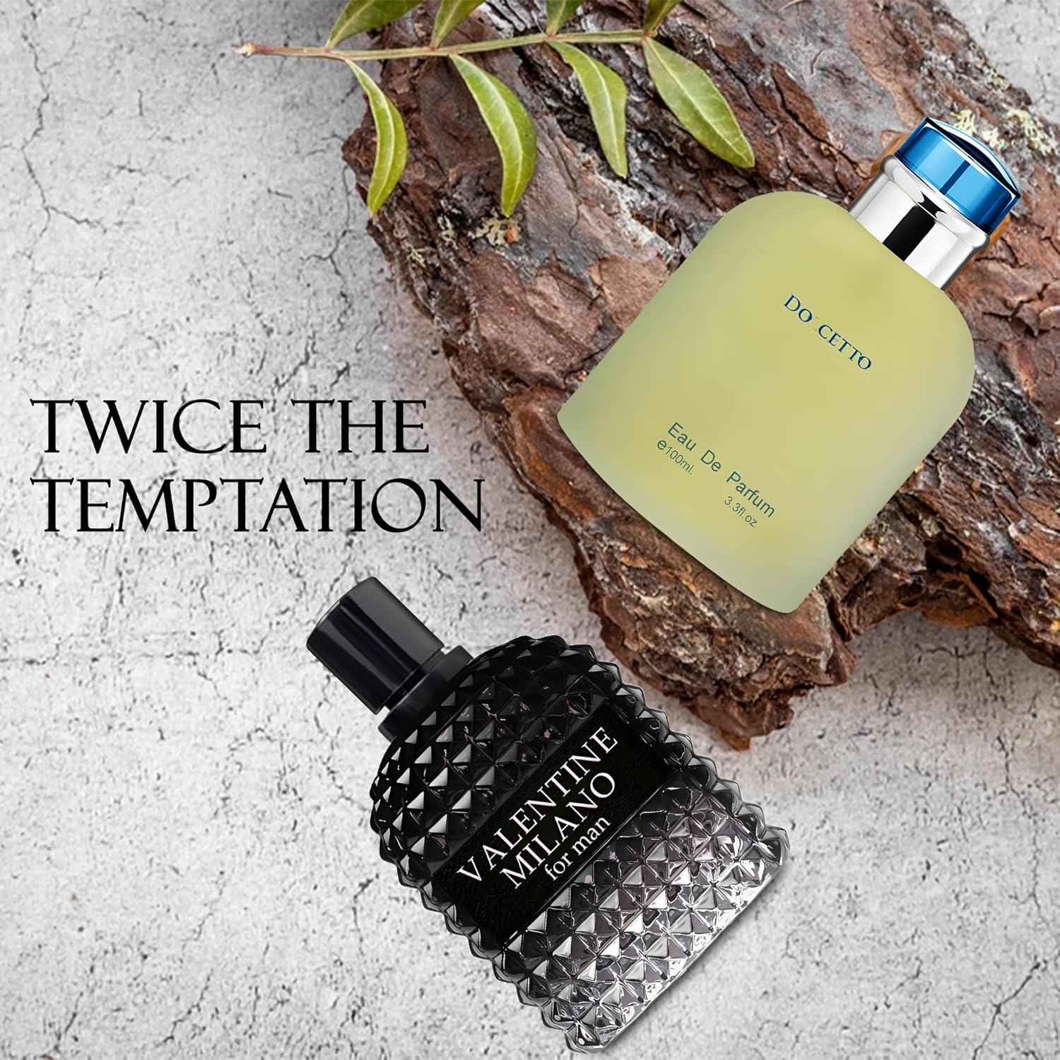 Valentine Milano/Docetto 2PCS Eau De Toilette for Men-Fresh, Romantic Scent Perfume for Men 3.4 Fl Oz Each Mens Cologne For All Skin Daily Used
