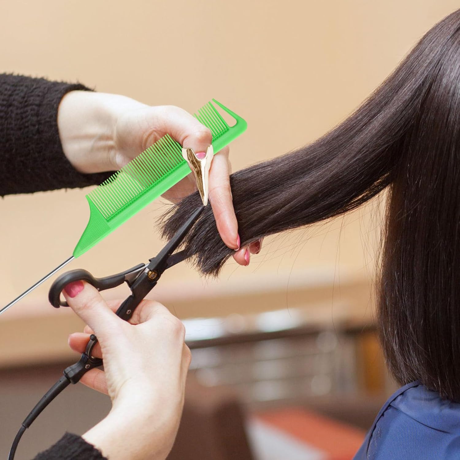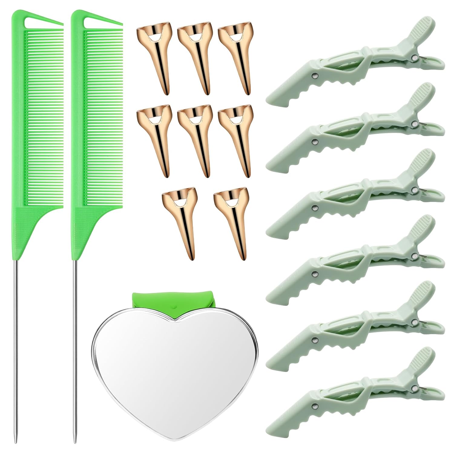 17 Pieces Hair Parting Tools Set Heart, Included 8P Hair Parting Ring 2P Metal Rat Tail Comb 6P Hair Sectioning Clip with 1P Magnetic Wrist Sewing Pin Holder for Braiding (Green)