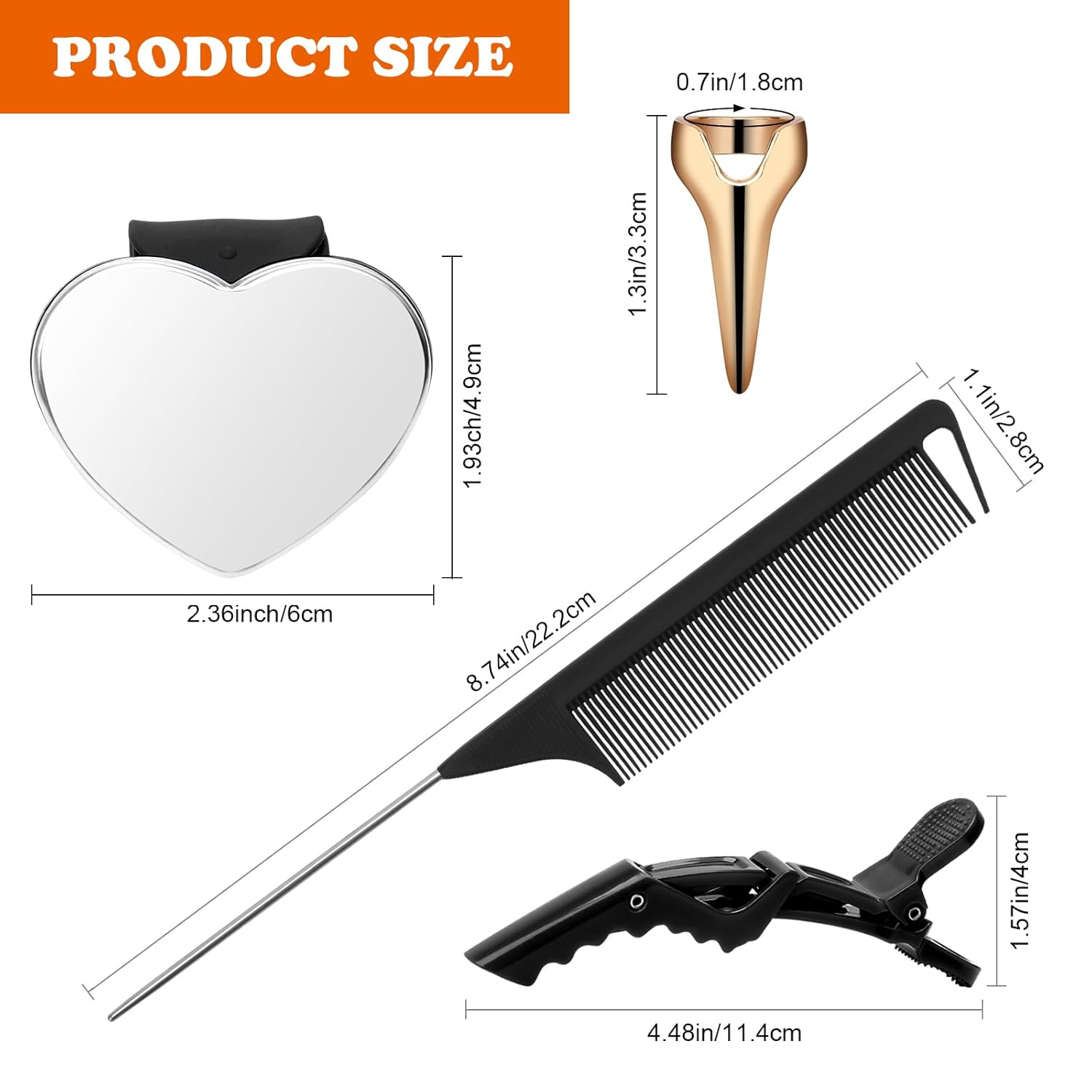 - 【Practical Salon Tool】The hair selection ring fits easily on the thumb for easy selection and distribution of hair. The rat tail comb helps to comb and separate your hair. The hair clips can help you fix layered hair. The magnetic wrist pin can fix the hair clip, metal brooch or other small metal accessories, convenient to use