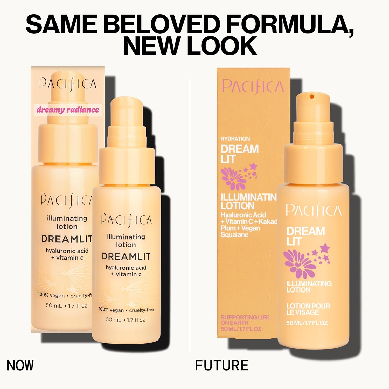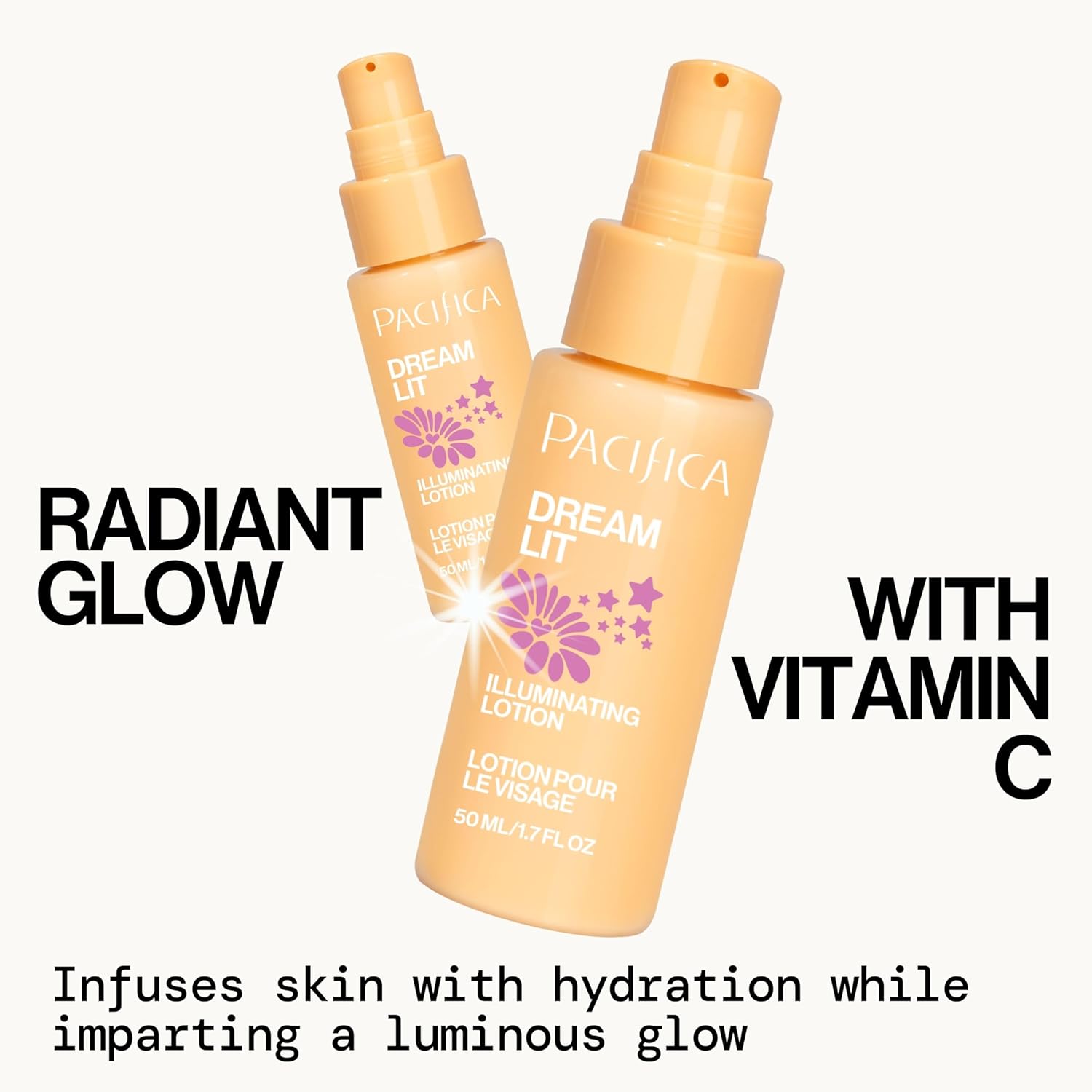 - INSTANT GLOW & HYDRATION – Pacifica Dreamlit Illuminating Lotion is the perfect solution for dull, dehydrated skin in need of a radiant boost. It immediately floods your skin with moisture and fine illuminating pigments, giving you a healthy, dewy glow upon application. Infused with hydrating heroes like hyaluronic acid, it plumps up dry, tired skin so it looks more vibrant and smooth. Use it as your daily moisturizer for an instant lit-from-within radiance – no glitter or greasiness, just naturally luminous, well-hydrated skin.