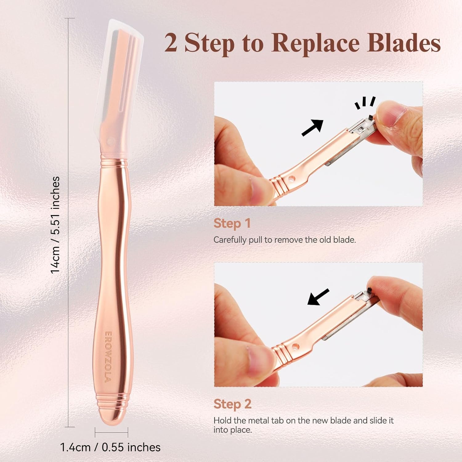 - Reusable Metal Facial Razor, EROWZOLA eyebrow razor handle is Ergonomically designed with 6 replaceable blades for a cost-effective, alternative that reduces plastic waste