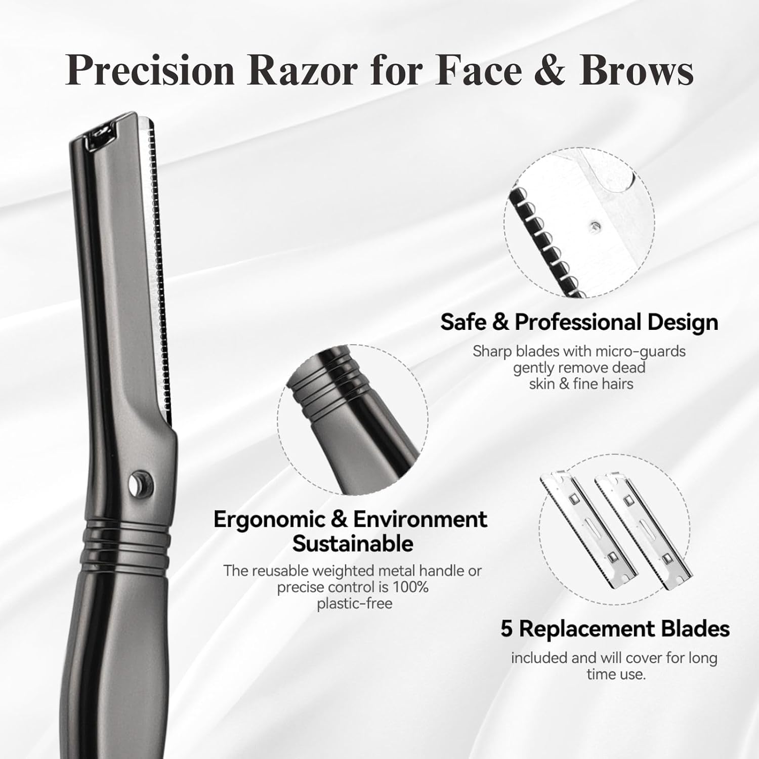 - Reusable Metal Facial Razor, EROWZOLA eyebrow razor handle is Ergonomically designed with 6 replaceable blades for a cost-effective, alternative that reduces plastic waste