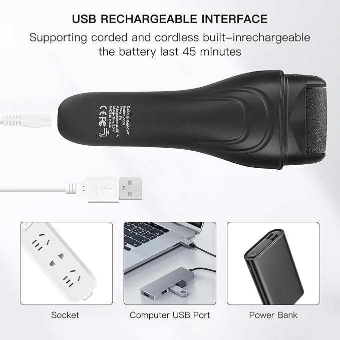 - 3 SPEEDS ADJUSTABLE: The electric foot healing tissue remover has 3 speeds, adjustable according to your needs, USB charging, large capacity lithium battery, short charging time.