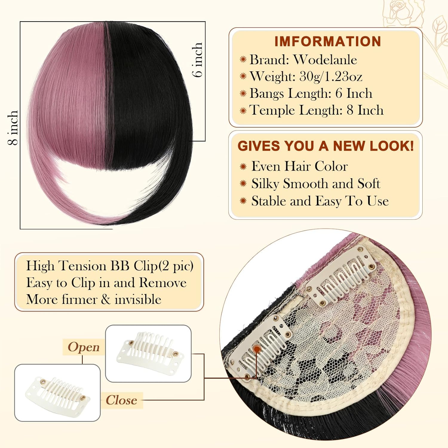- Clip-in Bangs Design: Bangs Clip-in Hair Extensions.Clip-in design makes it easier to wear,change a new hairstyle in seconds,making you look more attractive.Two Clips are invisible and undetectable even on your thin front hairline.