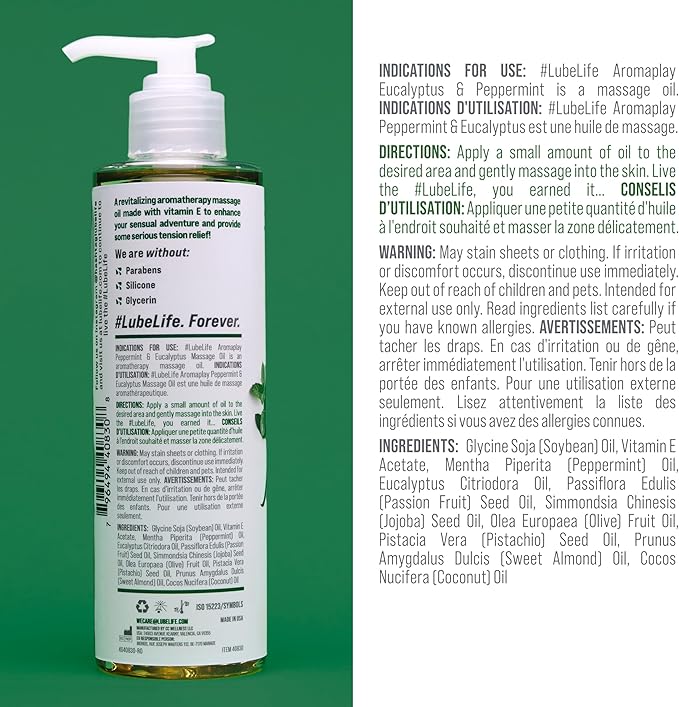 #Lube Life Aromaplay Eucalyptus and Peppermint Massage Oil, Aphrodisiac, Essential Oil for a Revitalizing Full Body Aromatherapy Massage, 8 Fl Oz