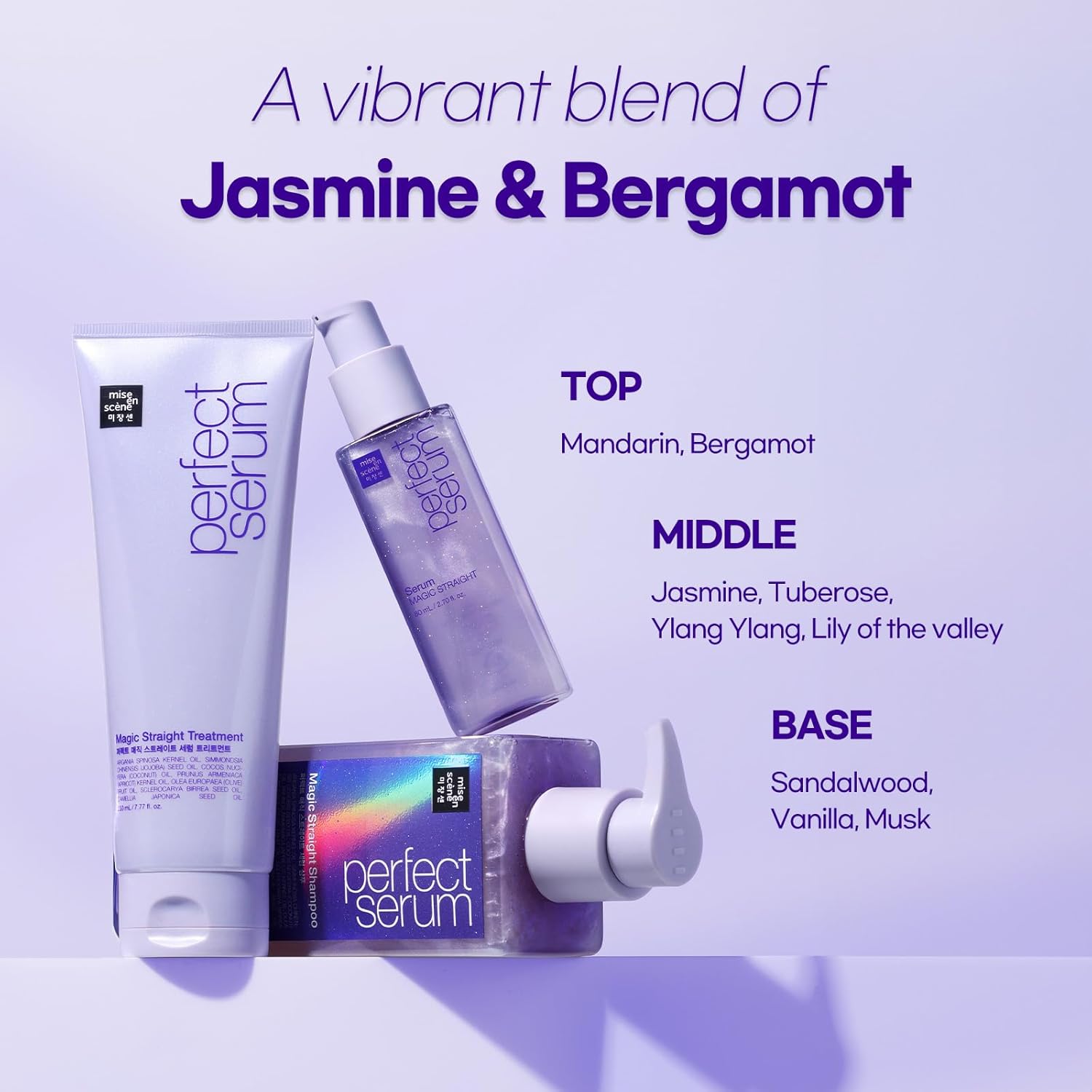 Mise En Scene Perfect Magic Straigt Serum Treatment | Anti-Frizz Cream for flyaway taming | Anti Humidity Hair Conditioner | Hydrating, Add Shine, Breakage Control | 7.77 Fl Oz