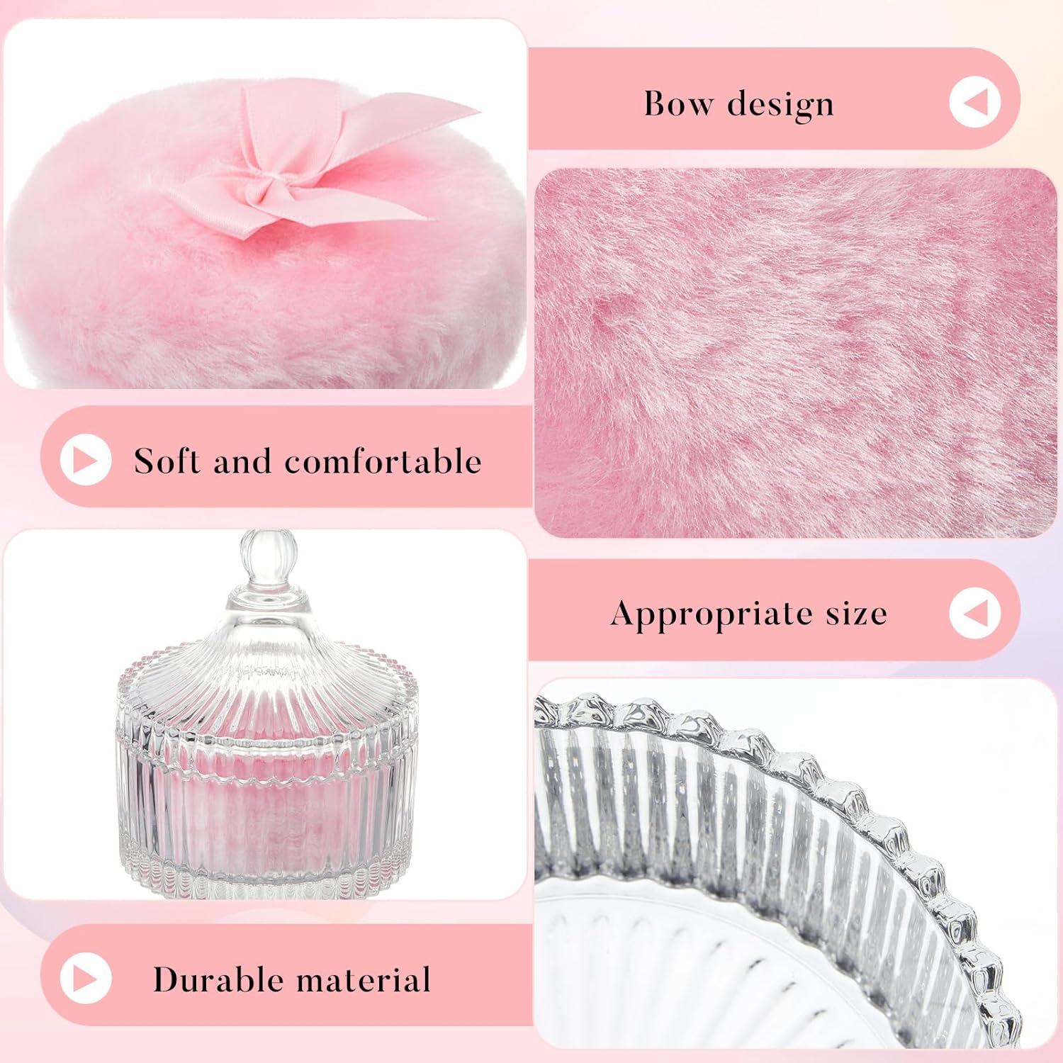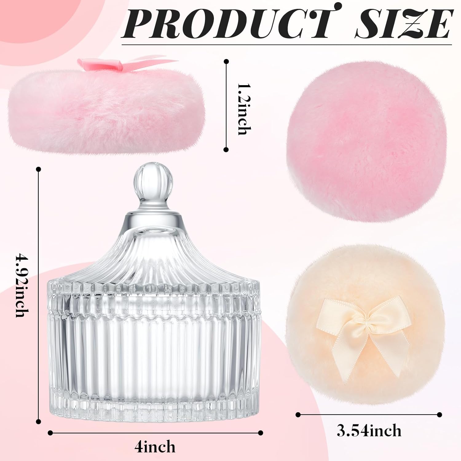 - Exquisite Design and Material: the set includes two powder puffs and a glass puff container; Our glass powder puff jars look beautiful, crystal glass material, powder puff is made of soft and skin-friendly plush; This vintage and classy style is designed to offer an irresistibly soft feeling on your skin while presenting an elegant look; Tips: this product is not a sealed can