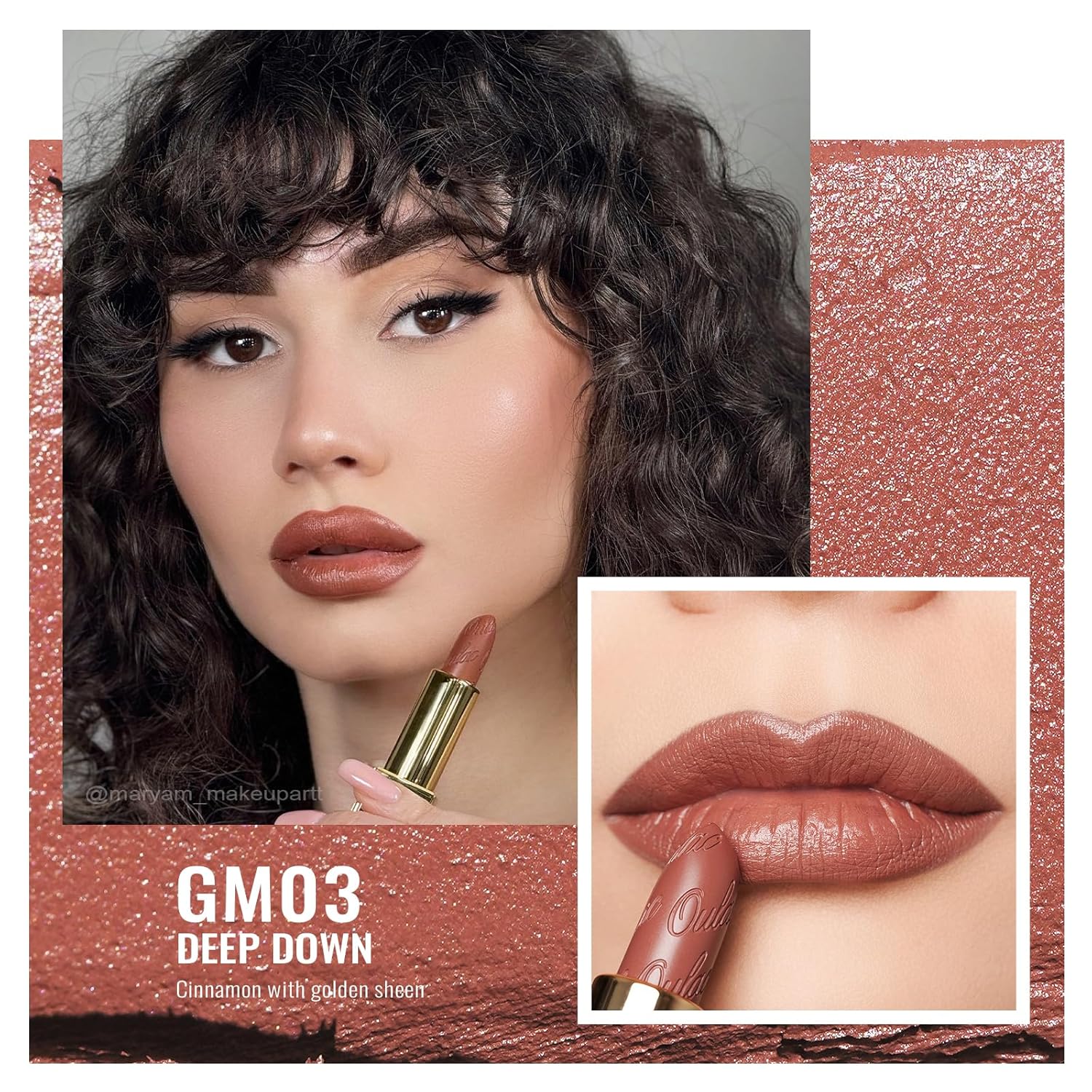 Oulac Matte Cinnamon Lipstick with Glow Metallic Finish - Vegan Lipstick for Women, Creamy Texture, Hydrating Clean Beauty Formula, High-End Magnetic Hook Design, GM03 Deep down