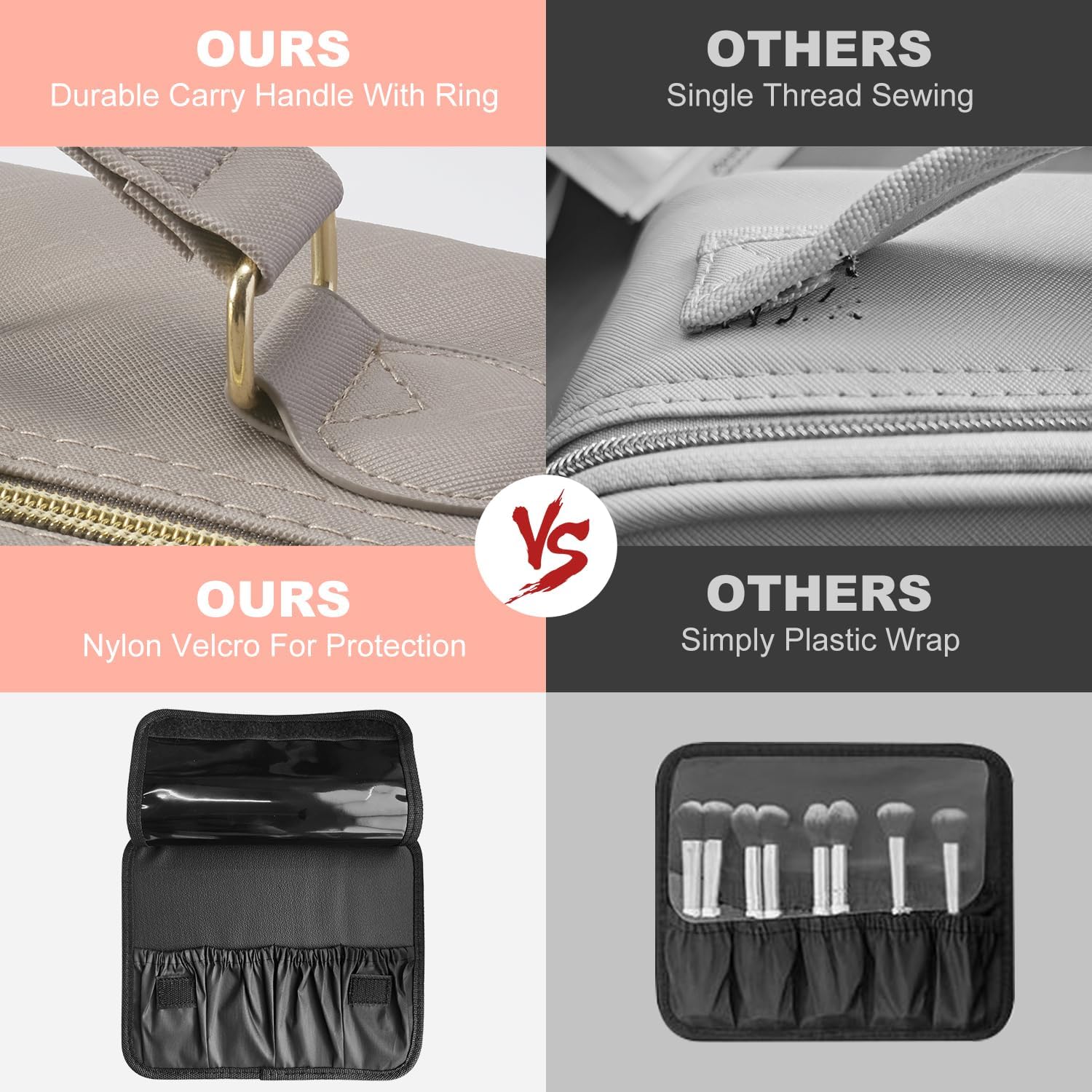 - ๐ใRobust and Sophisticated Constructionใ:The travel makeup bag is made of sturdy and durable synthetic leather, which is waterproof and wearable, dustproof and easy to clean. It is also environmentally friendly and odorless. The zipper system is made to a high standard and can be easily opened and closed with one hand for a smoother pull. The ergonomic handle and luggage strap located on the back of the bag can free your hands, and the removable strap can flexibly respond to various occasions.