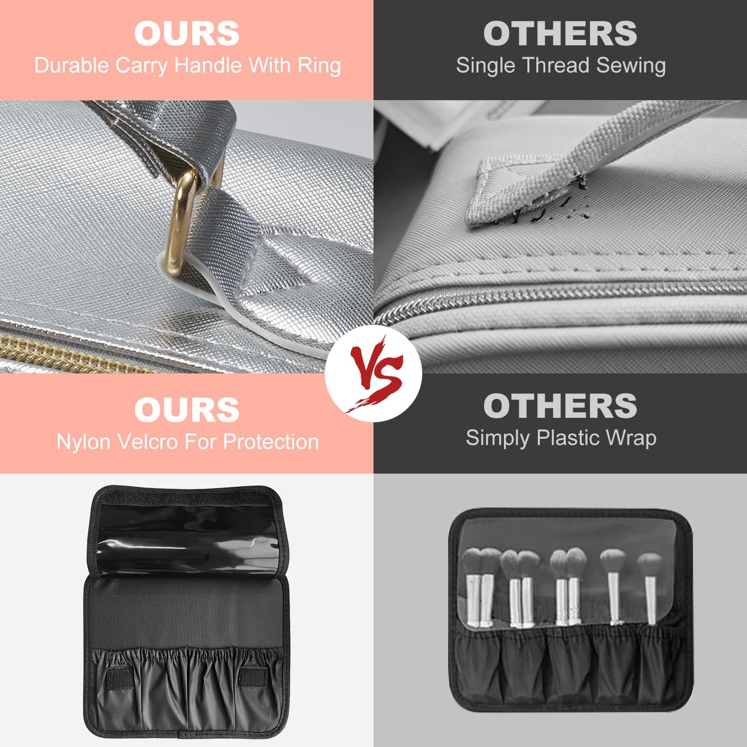 - ๐ใFlexible and Large Storage Spaceใ:Reasonable design makes the makeup bag easy to carry, not only can you store cosmetics and makeup tools, but also jewelry, electronic accessories, camera accessories, toiletries, etc. Removable EVA sponge divider Can DIY the space you need to meet your needs. Can accommodate a variety of sizes of cosmetics and makeup brushes. Which can well protect the cosmetics inside, ensure no breakage or leakage, and also keep them clean and dry.