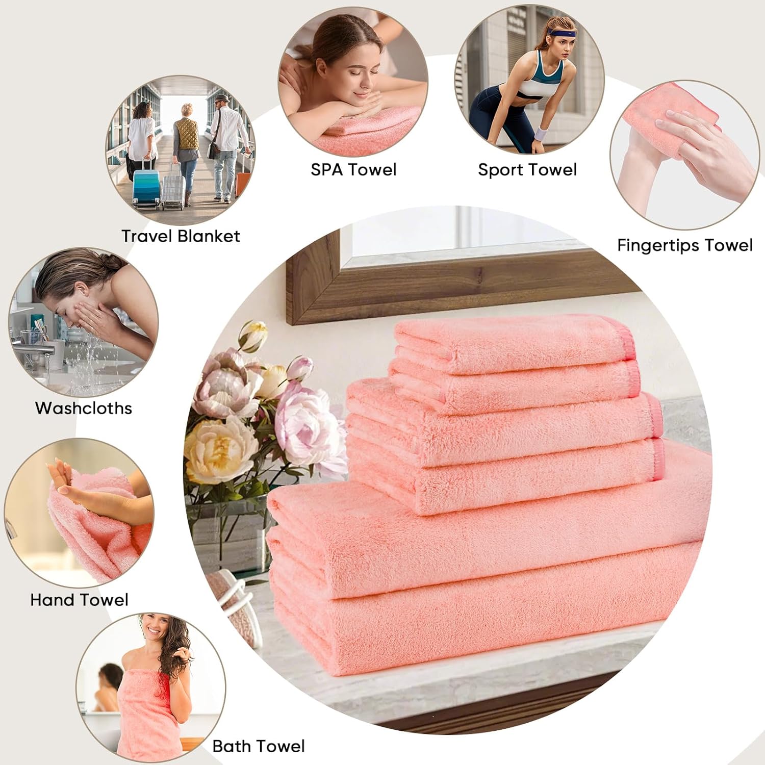 - FOCUS ON DETAILS: Each towel set features exquisite sewing along the edges, ensuring both convenience in daily use and durability during washing. Our microfiber towels and washcloths set embody a perfect blend of elegance and user-friendly design