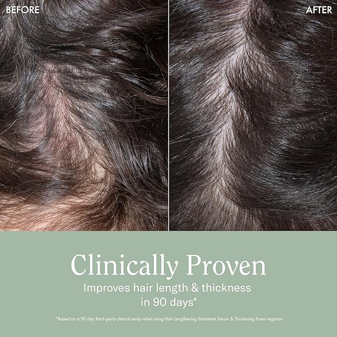 - BENEFITS: Clinically proven to improve hair length and thickness in 90 days. With a potent herbal blend of L-Arginine, Saw Palmetto, Turmeric Oil and Arnica that fortify hair at the root and create a healthy scalp microbiome optimal for supporting length.
