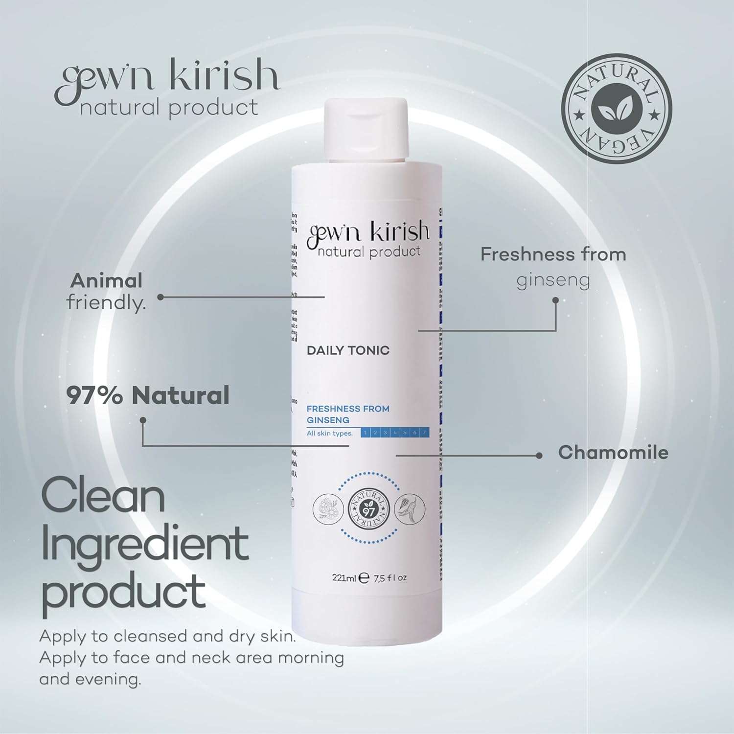 Gewโn Kirish Daily Tonic โ Purifying & Hydrating Face Toner with Ginseng, Balances Sebum & Revives Skin, Suitable for Oily, Dry & Sensitive Skin, 7.5 fl oz