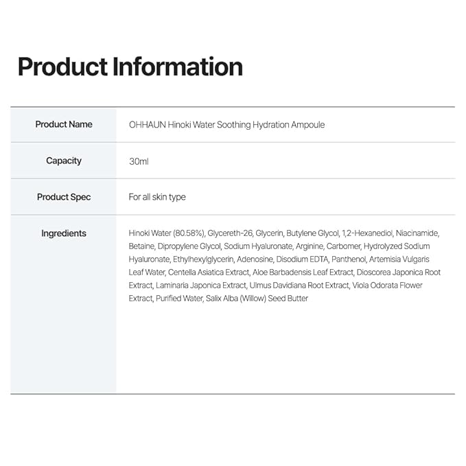 - Soothing & Hydrating ๐ฟ - Enriched with 80.58% Hinoki water, providing intense hydration and soothing effects for sensitive skin.