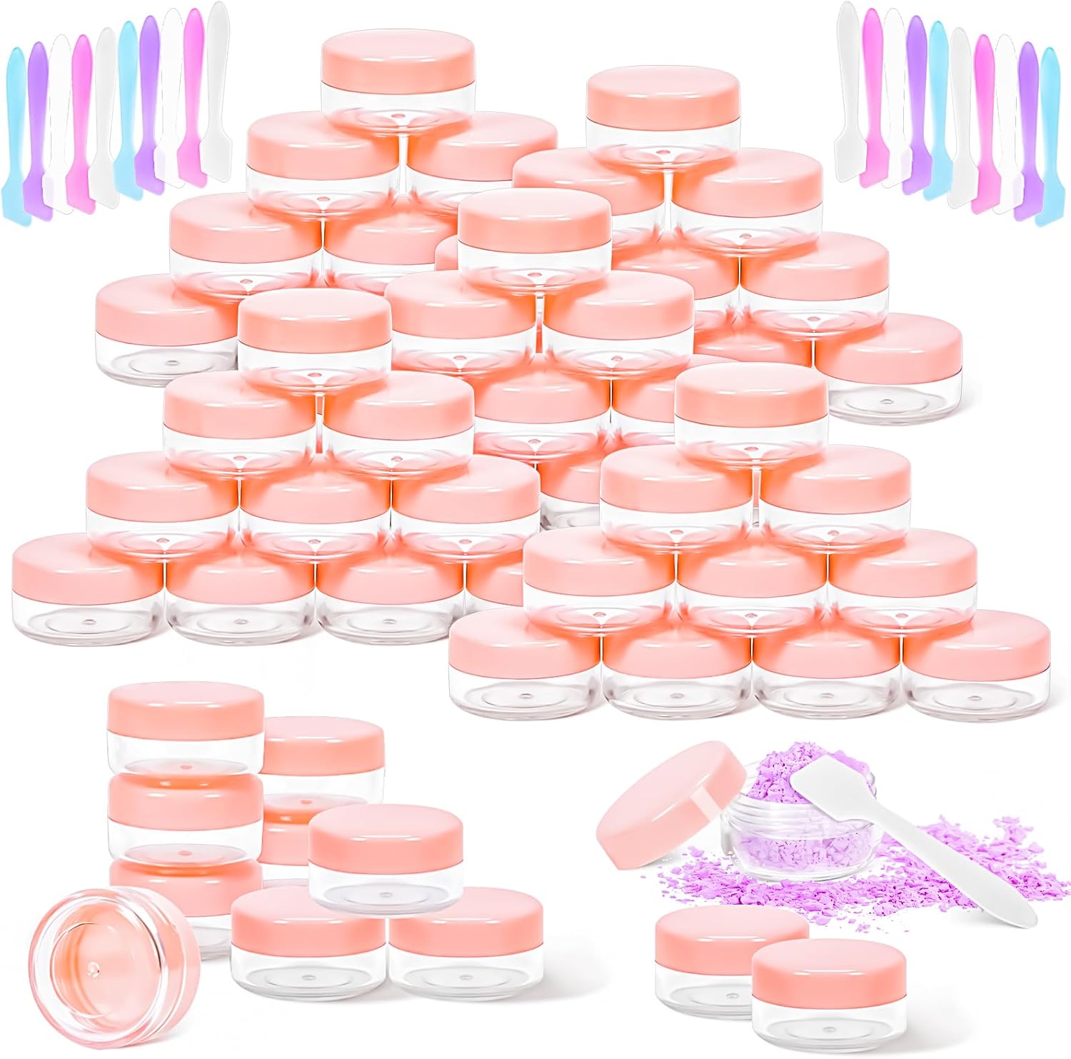 MotBach 50Pack 10g Small Plastic Cosmetic Containers with Lids, 10gram Plastic Makeup Containers Jars with Spatulas, 10ml Sample Jars Travel Size Containers for Toiletries Lip Balm Slime Cream Lotion