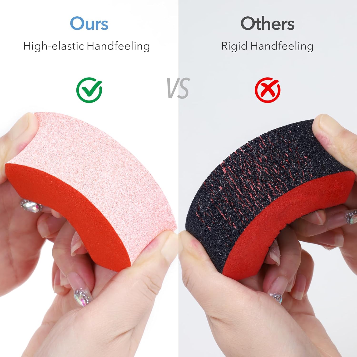 - Premium Salon-Grade Material: White corundum sand coating ; High-elastic sponge bends to contour nails ; Ultra-soft and lightweight for comfortable control; Smoothly for even buffing; Strong adhesive keeps sand securely in place