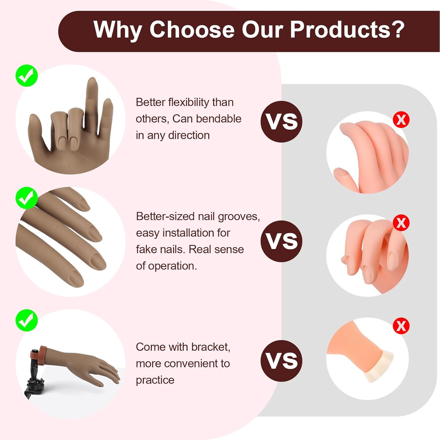 - 【Flexible and Adjustable】Experience unmatched flexibility with our nail practice hand, allowing effortless adjustment to any angle without bouncing back. You can easily rotate the fingers, replicating the movements of an actual client and enabling practice from various perspectives.
