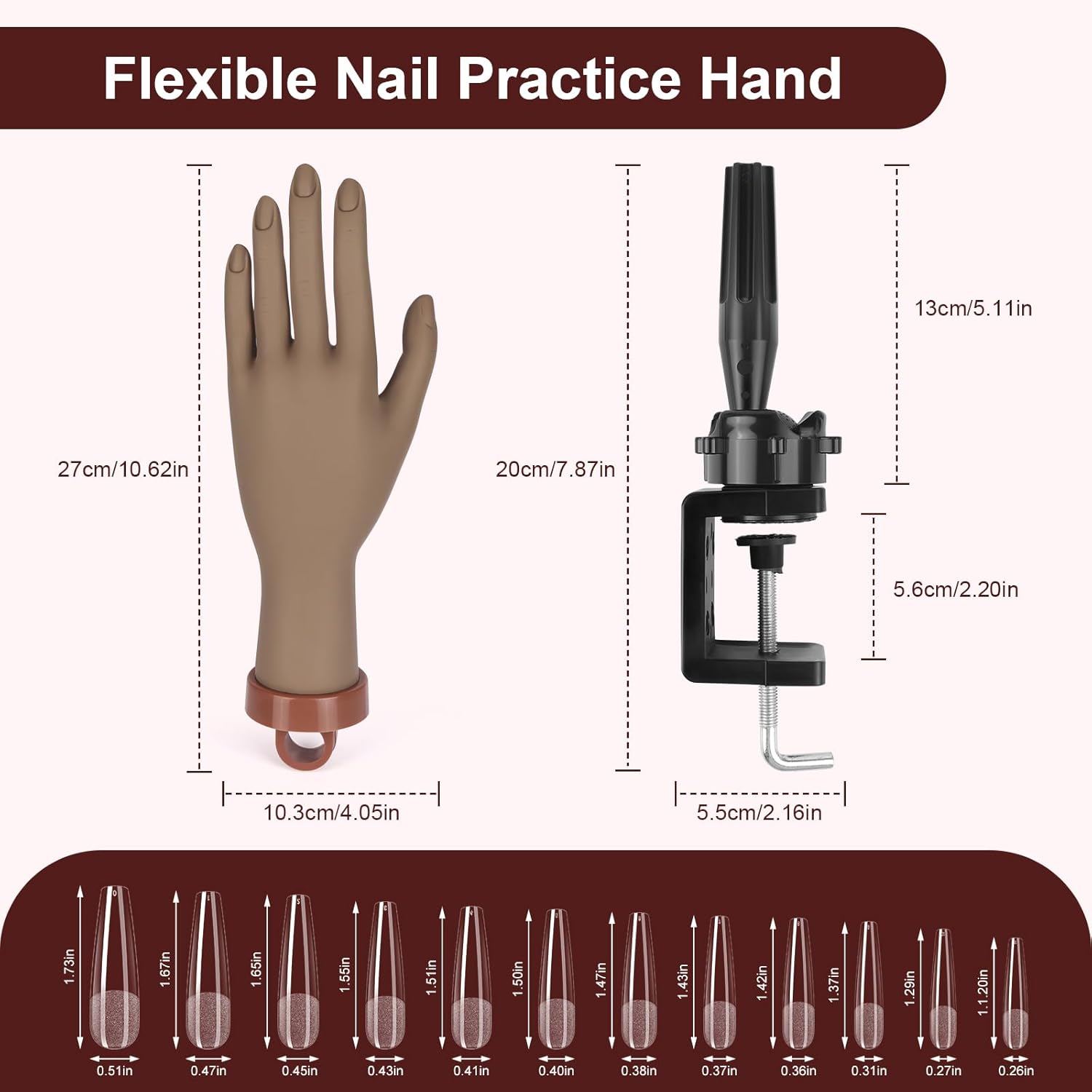 - 【Versatile Usage】Designed for both beginners and experienced manicurists, our acrylic nail practice hand is suitable for acrylic, gel, and wrap practice, as well as nail art designing and showcasing. It's an essential tool for nail salons, DIY enthusiasts, and professionals alike, and also makes for a thoughtful gift.