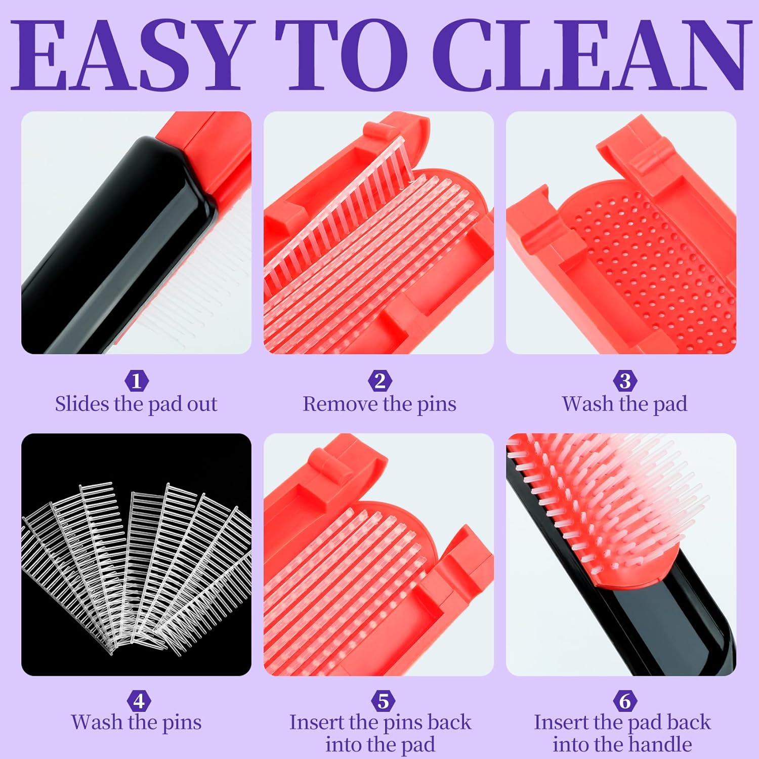 - DETANGLER HAIR BRUSH: This detangling brush head has flexible 8 rows of nylon comb teeth with a removable adjustable holder, you can easily comb curly, wavy, coily, wet, thick, long and natural hair,with the provided holder to enhance firmness and adjust the distance between detangler brushes according to hair type. No pain is felt on the scalp, saving more time to comb your hair.