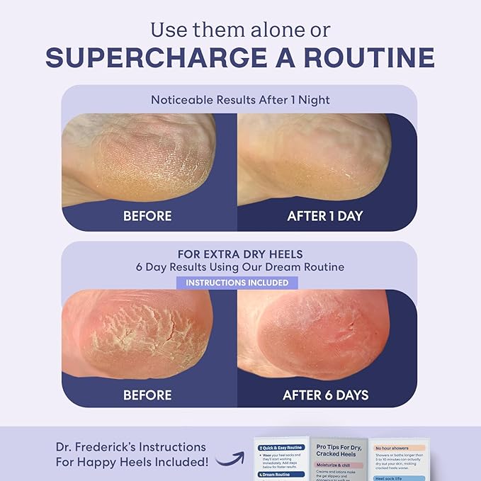 - Visible Results Fast: Dr. Frederick’s Original Fuzzy Heel Socks are expertly developed to transform dry, rough feet into soft, smooth soles. Most users see a difference after just one night, with best results achieved after one week of consistent use.