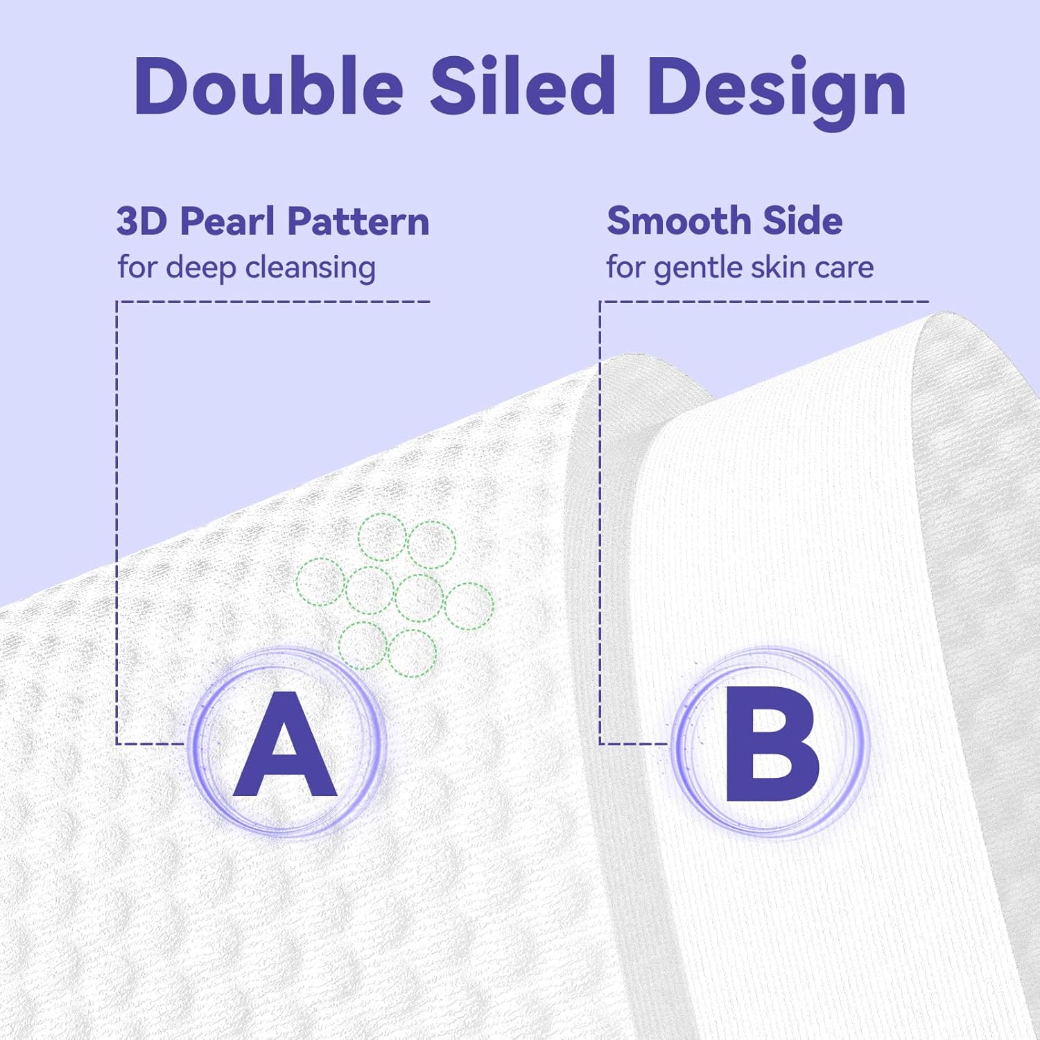 - 【Dry & Wet Dual Uses】Jolly Care face towelettes disposable are designed with a two-sided texture, one side is pearl pattern texture surface to increase friction for deep cleansing, and the other is smooth surface for wiping skin gently, with super absorbent to help dry your face after washing face and quickly remove makeup