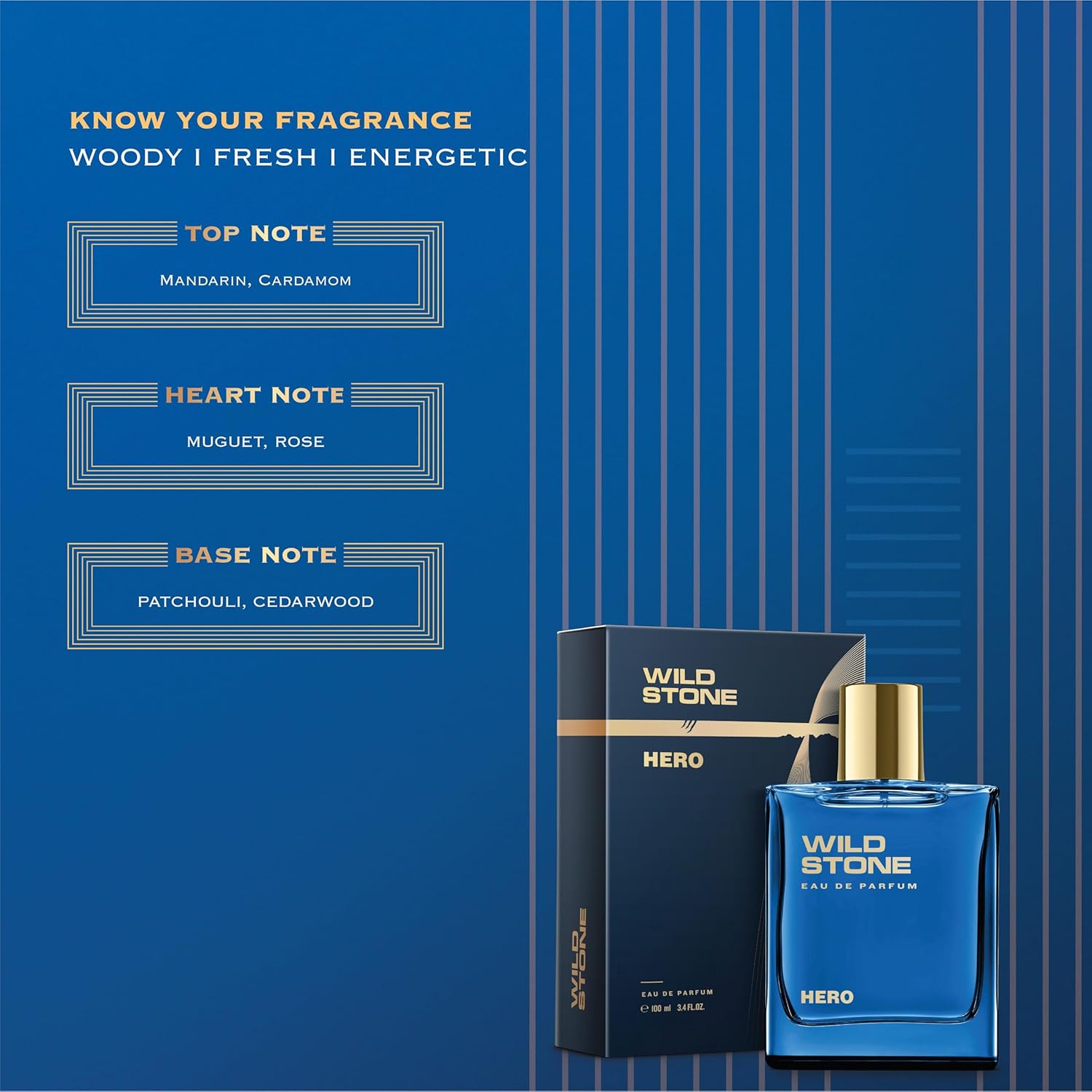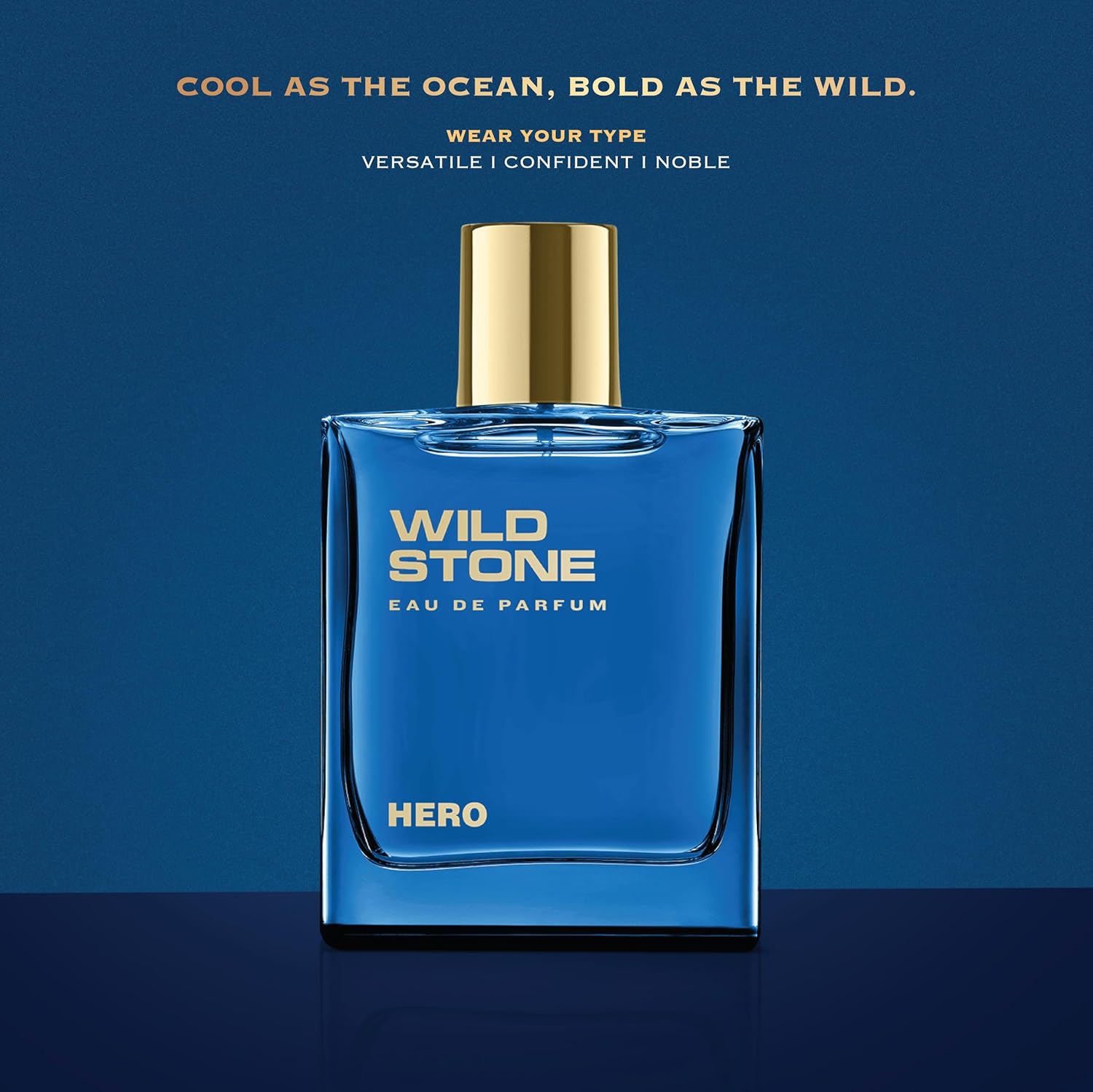 Wild Stone Hero Perfume for Men| Luxury Eau De Parfum | Long-Lasting Fragrance | Premium Perfume for Men | Infused with Aromatic & Marine Notes 100 ml 3.4 Fl oz | Vegan | Clean Ingredients