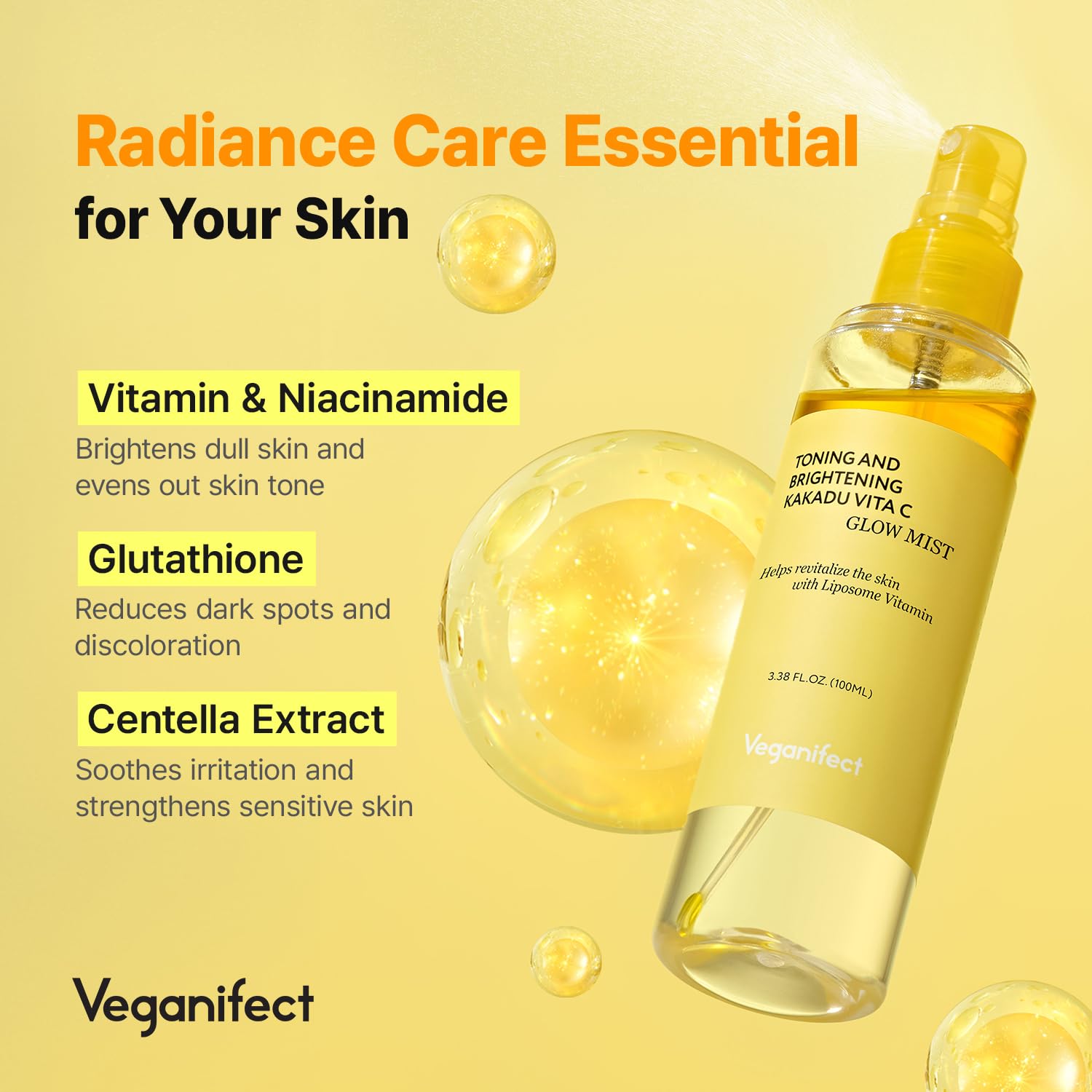 - PROVEN RESULTS - Clinical trials have proven significant improvements with VEGANIFECT Vitamin C Glow Mist : +50.65% Dark Spot Reduction, +3.94% Skin Tone Improvement, +15.46% Blemish Reduction. Individual results may vary.